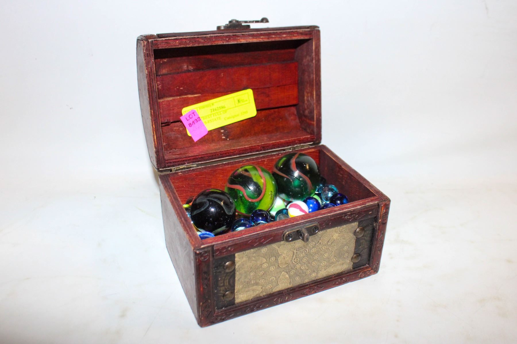 WOOD CHEST FULL OF MARBLES-ESTATE
