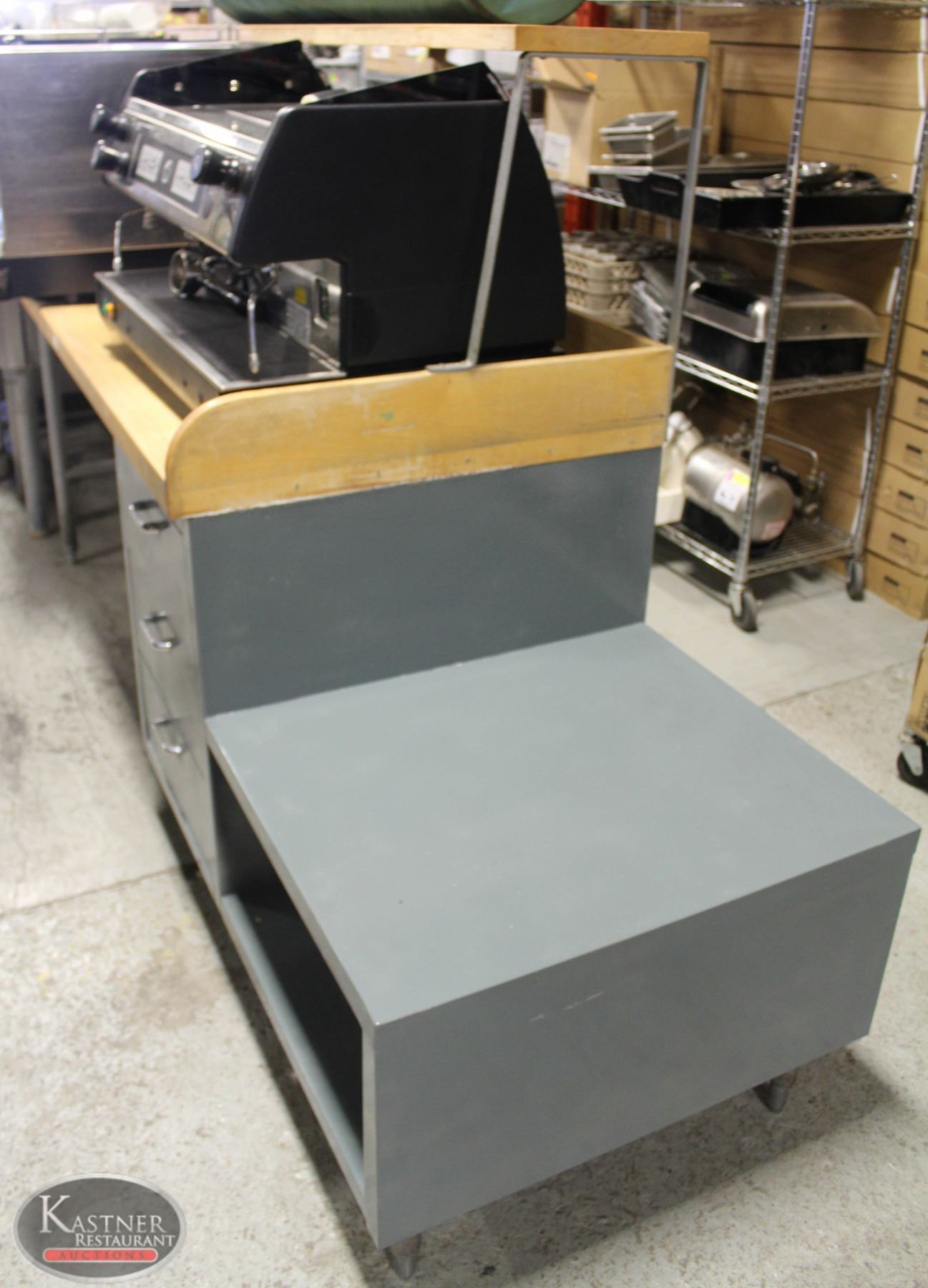 EQUIPMENT STAND. TABLE DIMENSIONS: 72" X 30-3/8" X 34.5". EQUIPMENT STAND DIMENSIONS: 24" X 29" X 21"