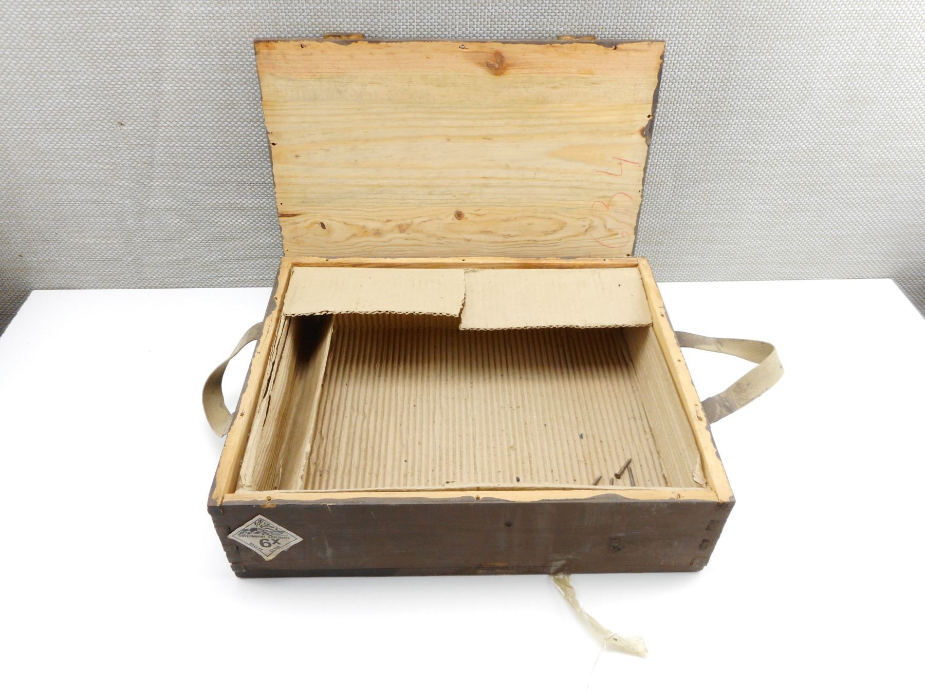 WOODEN AMMO CRATE , APPROX. SIZE 17.5" X 14" X 5.5" WOODEN AMMO CRATE, STAMPED 7.62 BALL CARRIER
