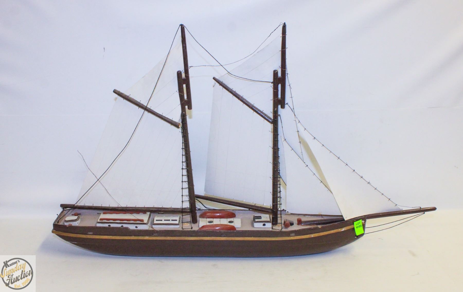 WOODEN MODEL SCHOONER W/ SAILS & RIGGING