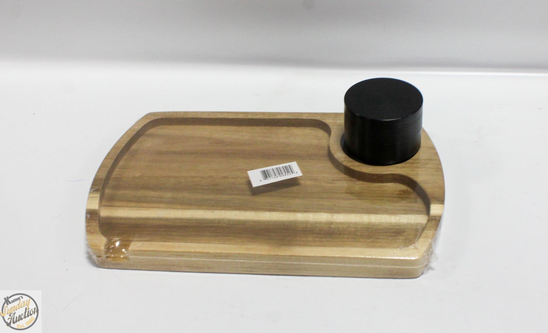 WOODEN ROLLING TRAY WITH 5 PIECE GRINDER