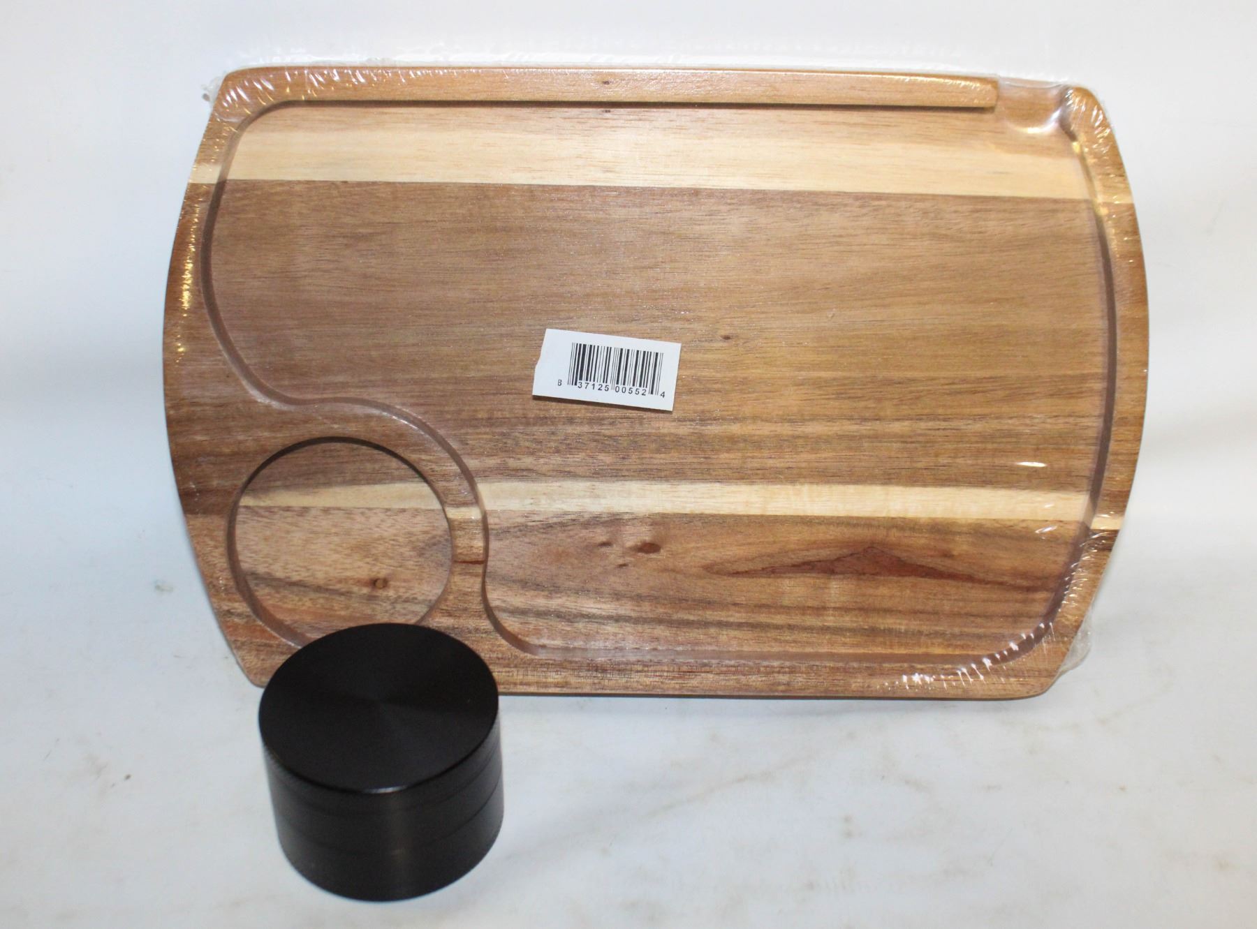 WOODEN ROLLING TRAY WITH 5 PIECE GRINDER