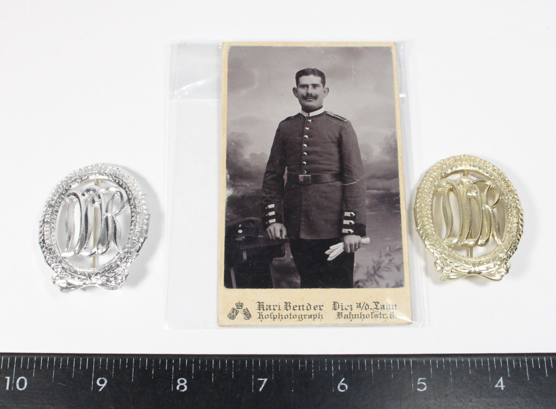 KARL BENDER PHOTOGRAPHER PORTRAIT IN UNIFORM IMPERIAL GERMAN WW1 CENTRAL POWERS SOLD WITH COLD WAR COMMUNIST GERMAN DDR SPORTS BADGE SPORTS BADGE LOT OF 2 DDR EAST GERMAN COMMUNIST INSIGNIA BADGES