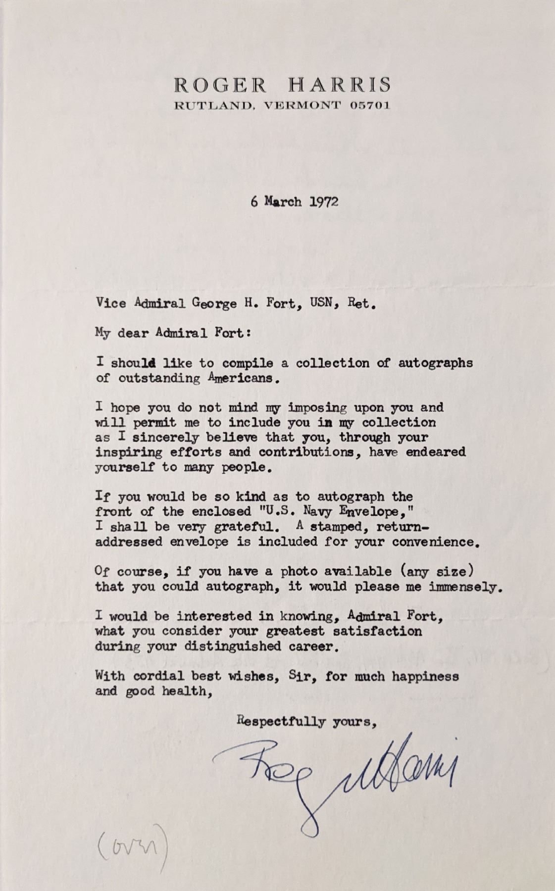 WW2 military Roger Harris signed letter. 7 x 11 inches.