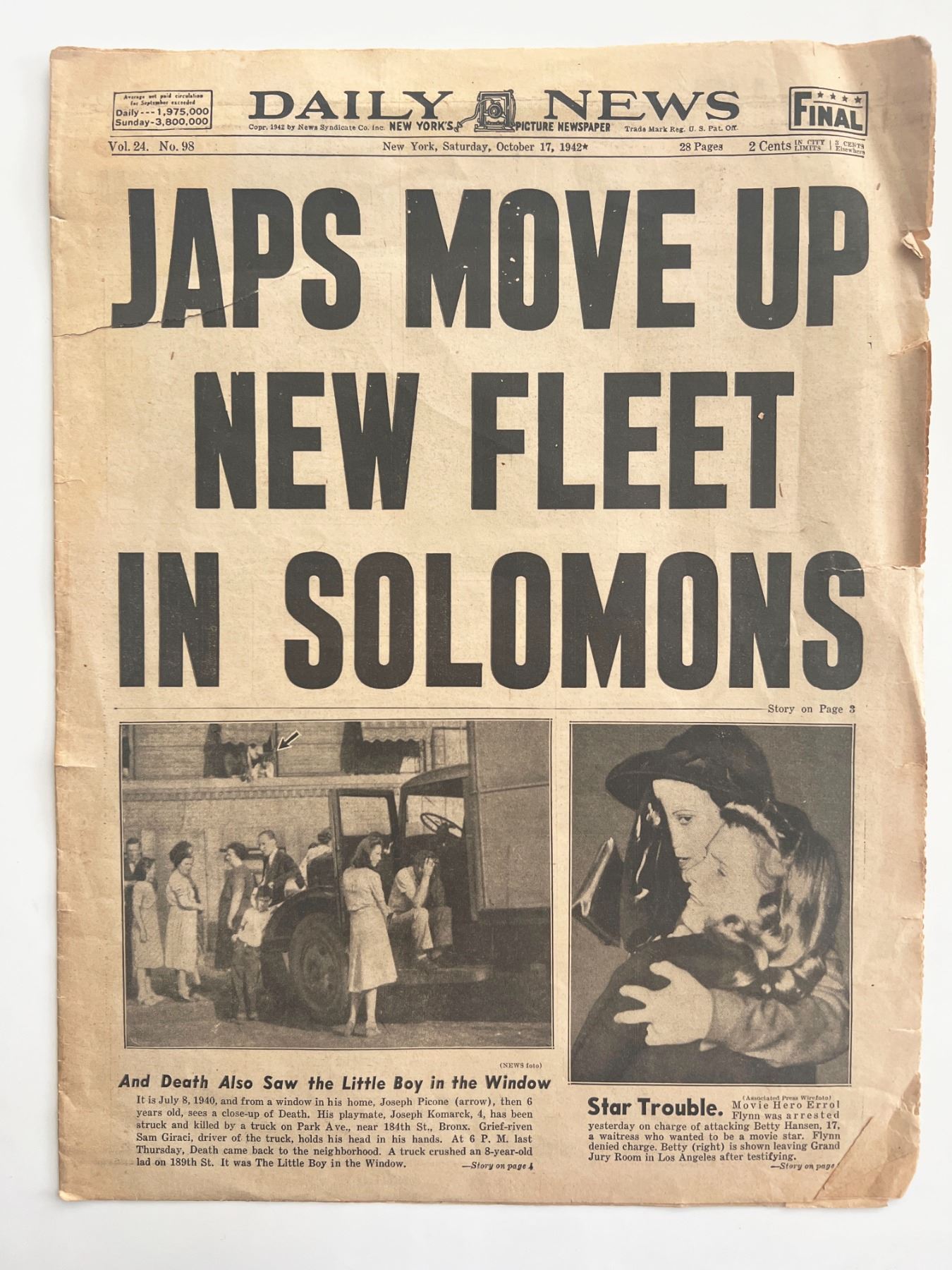 WWII Daily News newspaper. Vol. 24 No. 98 - New York, Saturday October 17th 1942. 12x15 inches