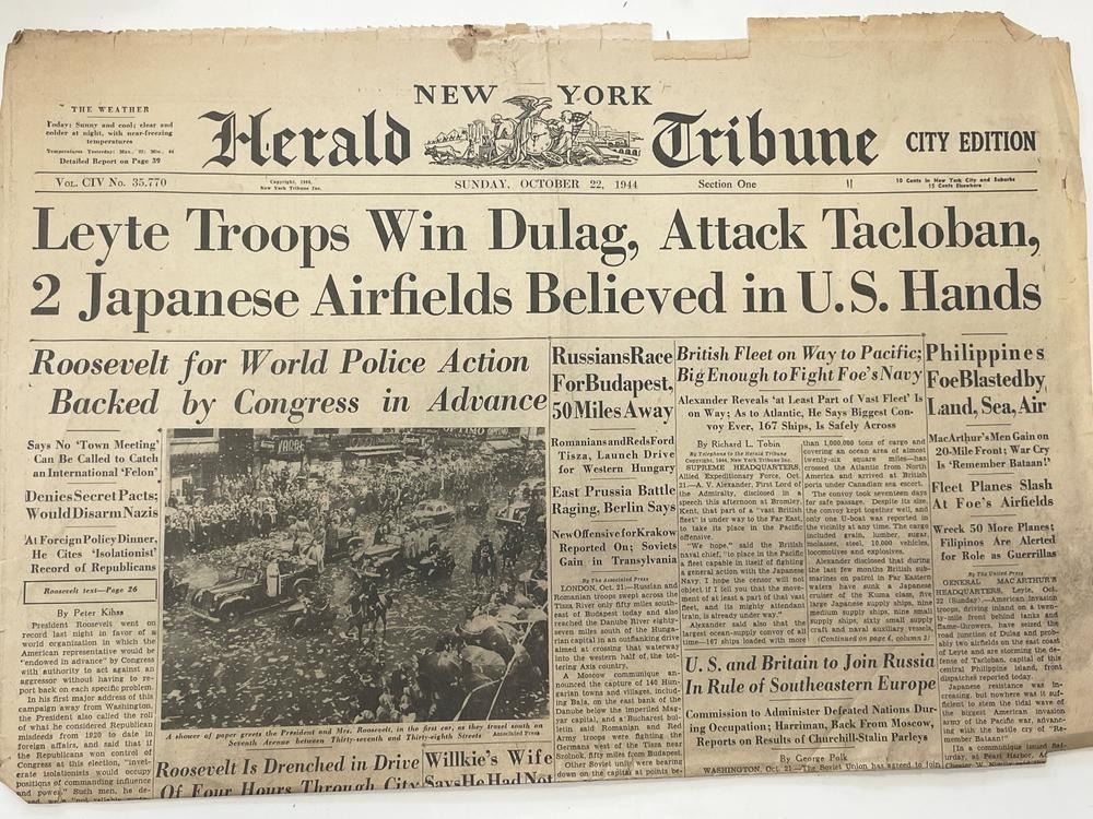 WWII New York Herald Tribune Original Vintage Newspaper - October 22nd, 1944