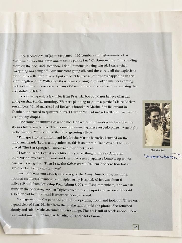WWII Claire Becker Signed Magazine Page. 9x10 inches