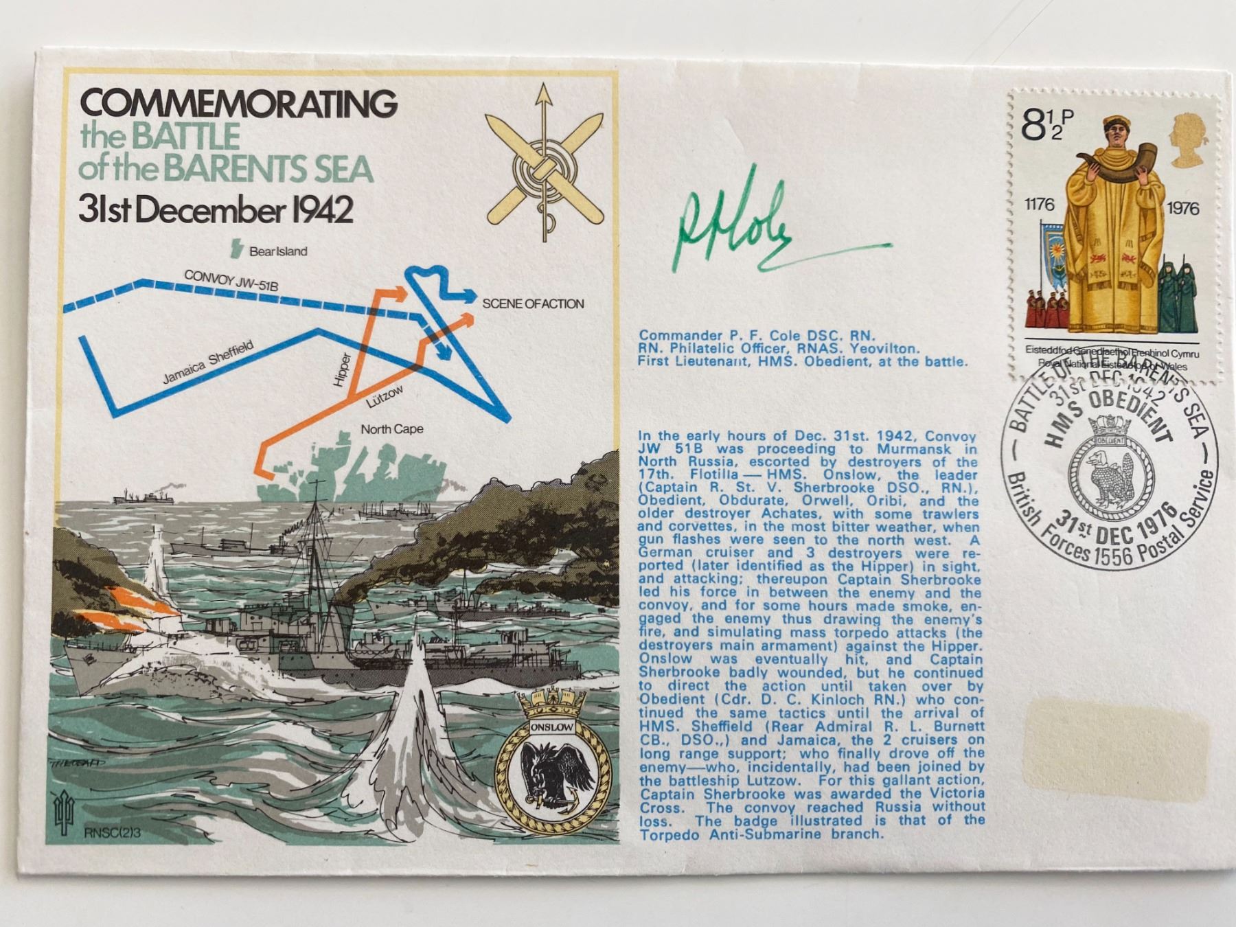 WWII Commemorating the Battle of the Barents Sea 31st December 1942 Commader P.F. Cole Signed Cover - 31st December 1976. 5x7 inches