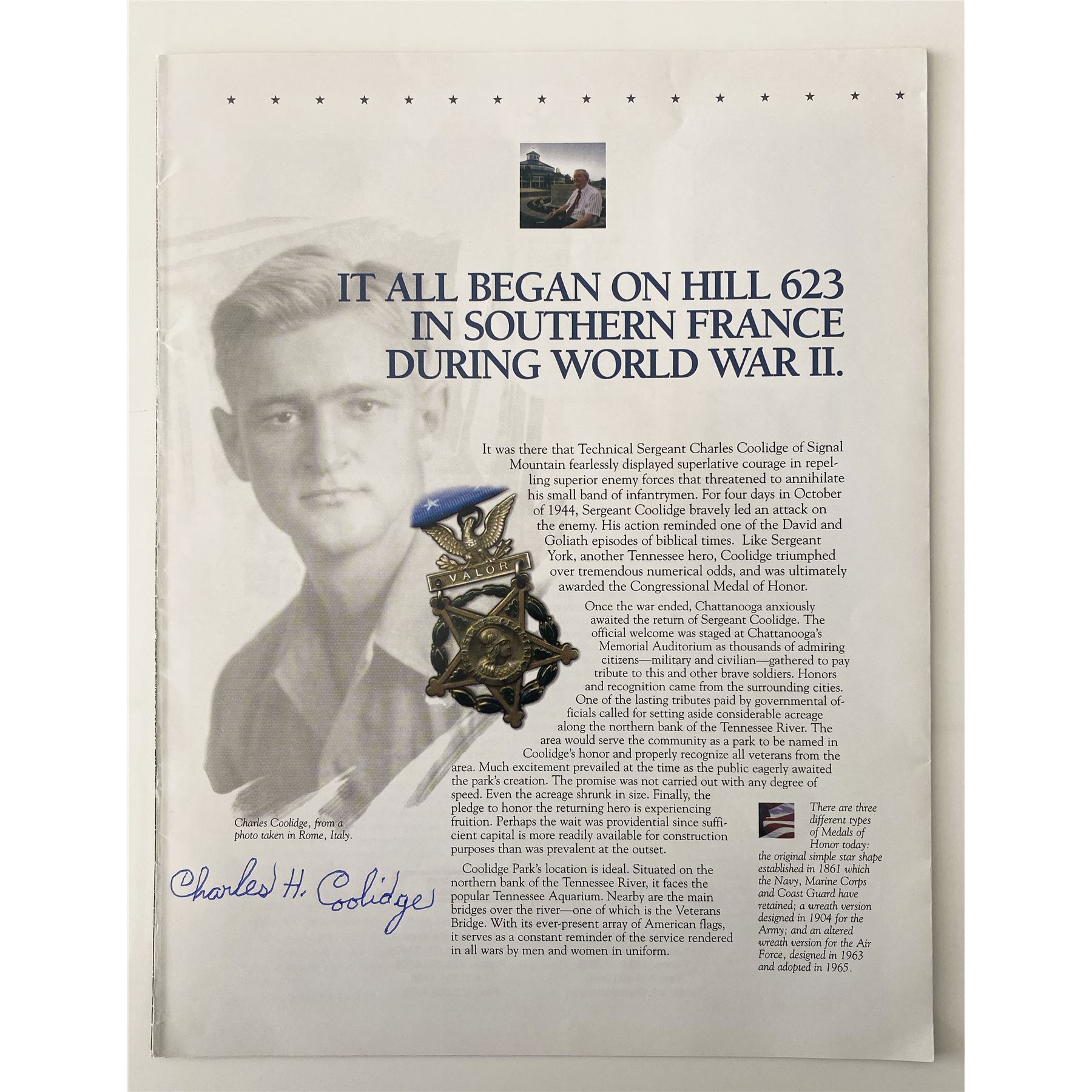 WWII Medal of Honor Recipient Charles H. Coolidge signed magazine page.9x11 inches