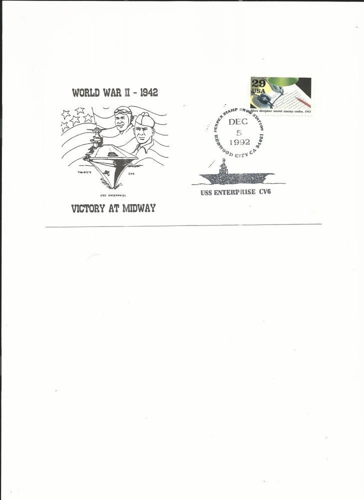 World War II 1942 - U.S.S. Enterprise Victory at Midway - First Day Cover - Dec 5th 1992 - Redwood City, CA