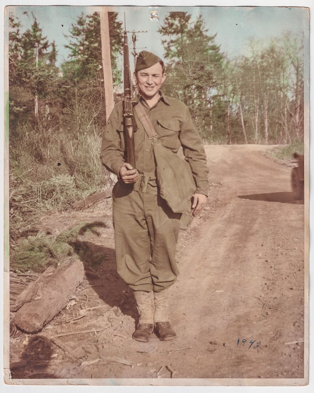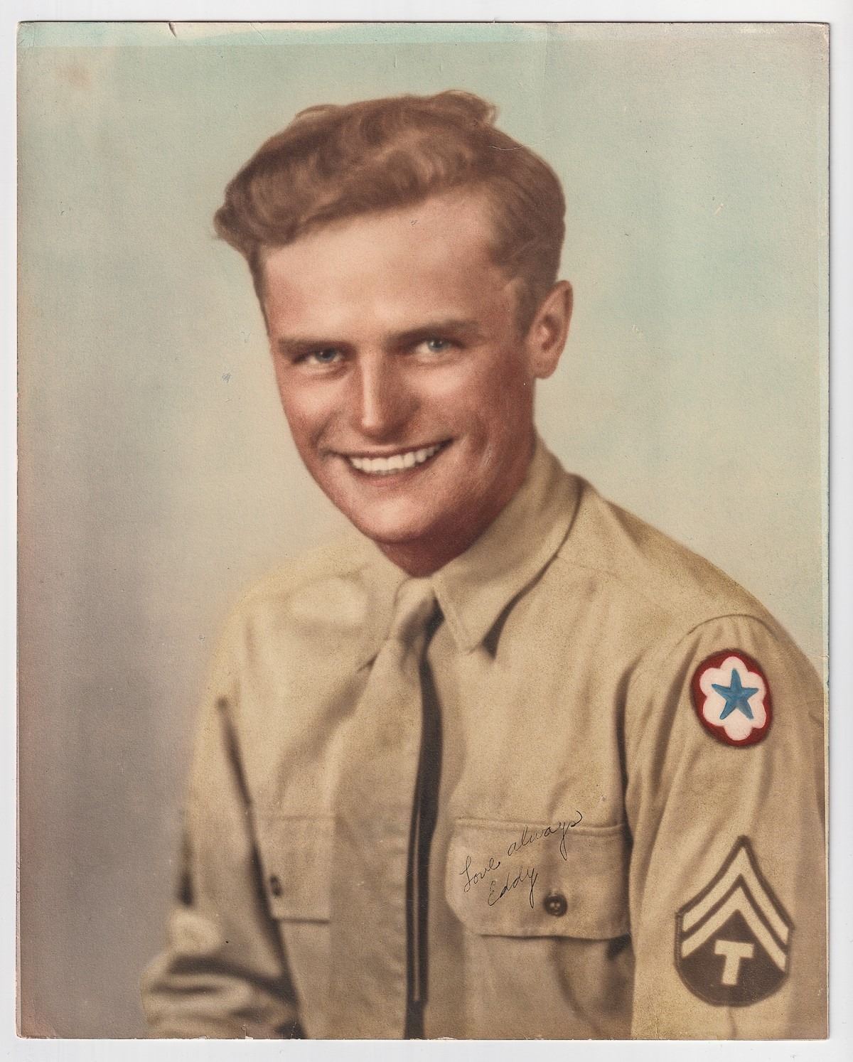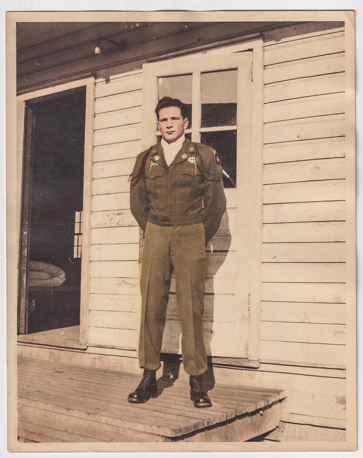Group of eight WWII soldier portraits, hand colored photographs, approx. 8 x 10 inches each.