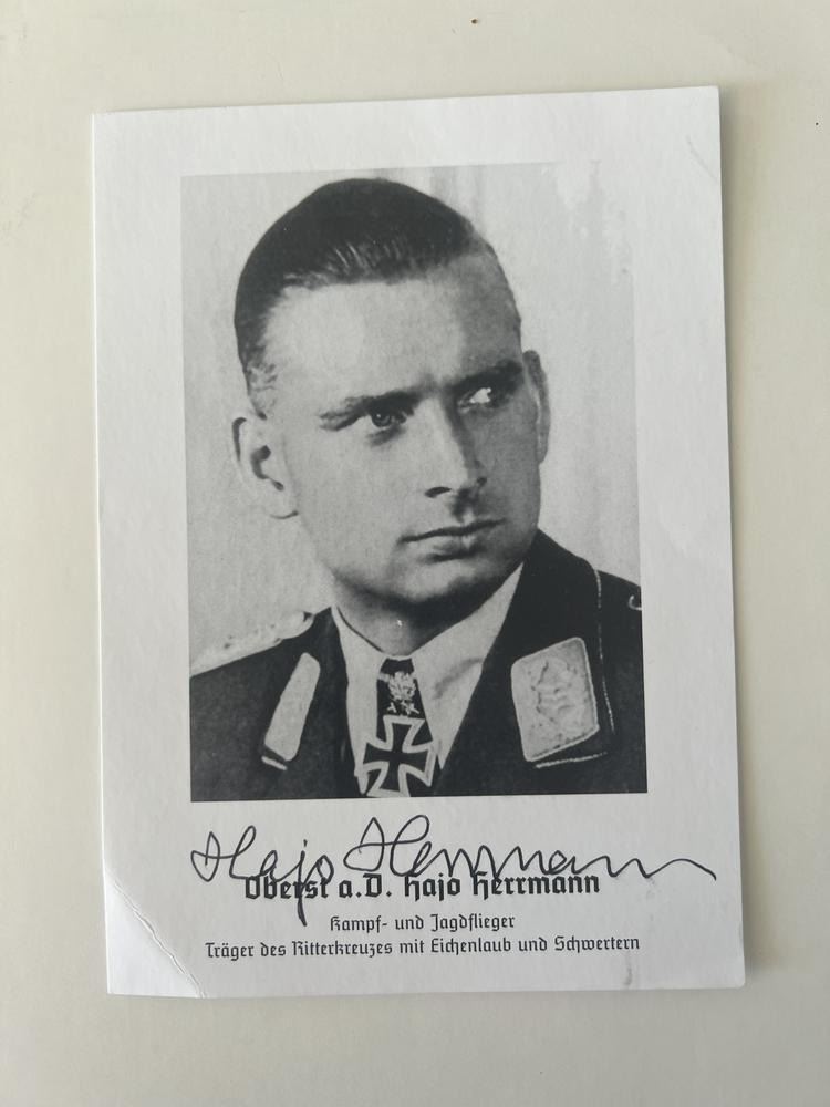WWII pilot Hajo Herrmann signed photo. 4x6 inches