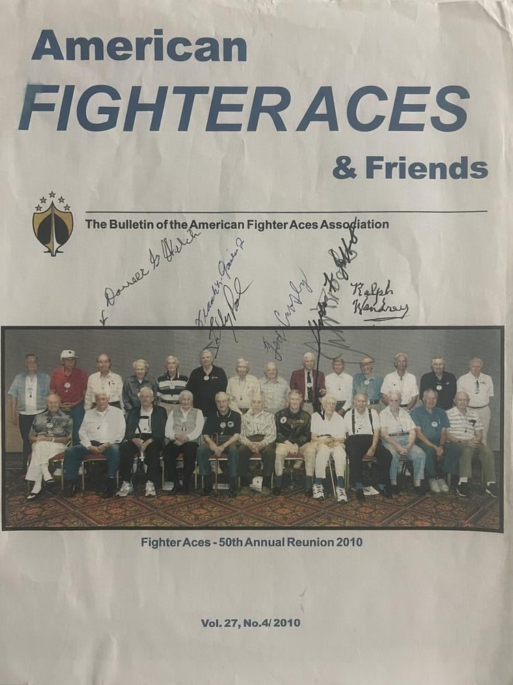 WWII pilots American Fighter Aces and Friends signed 50th Annual Reunion Bulletin.8x11 inches