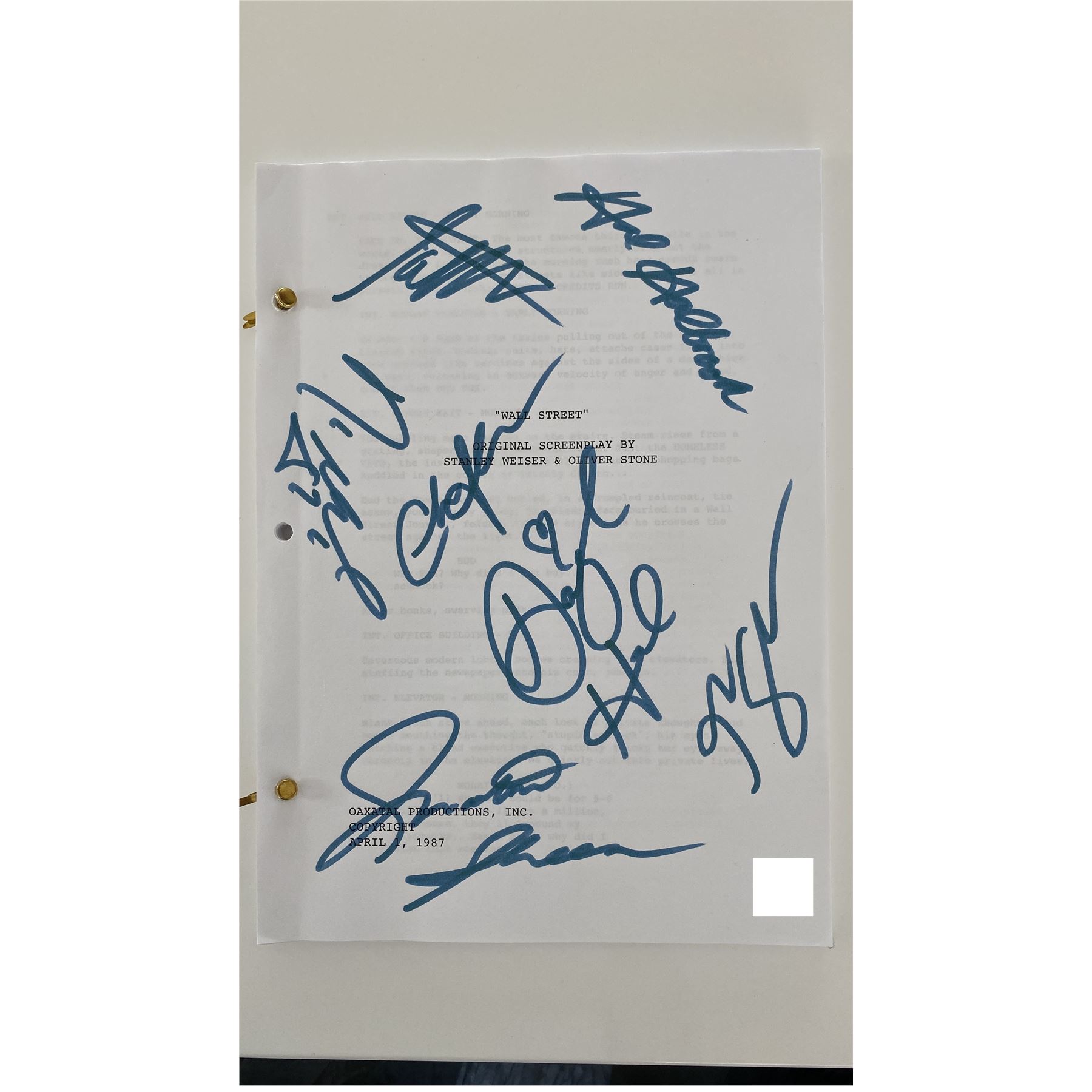 Wall Street original screenplay autographed by Oliver Stone, Michael Douglas, Charlie Sheen, Martin Sheen, Hal Holbrook, Daryl Hannah and John C. McGinley