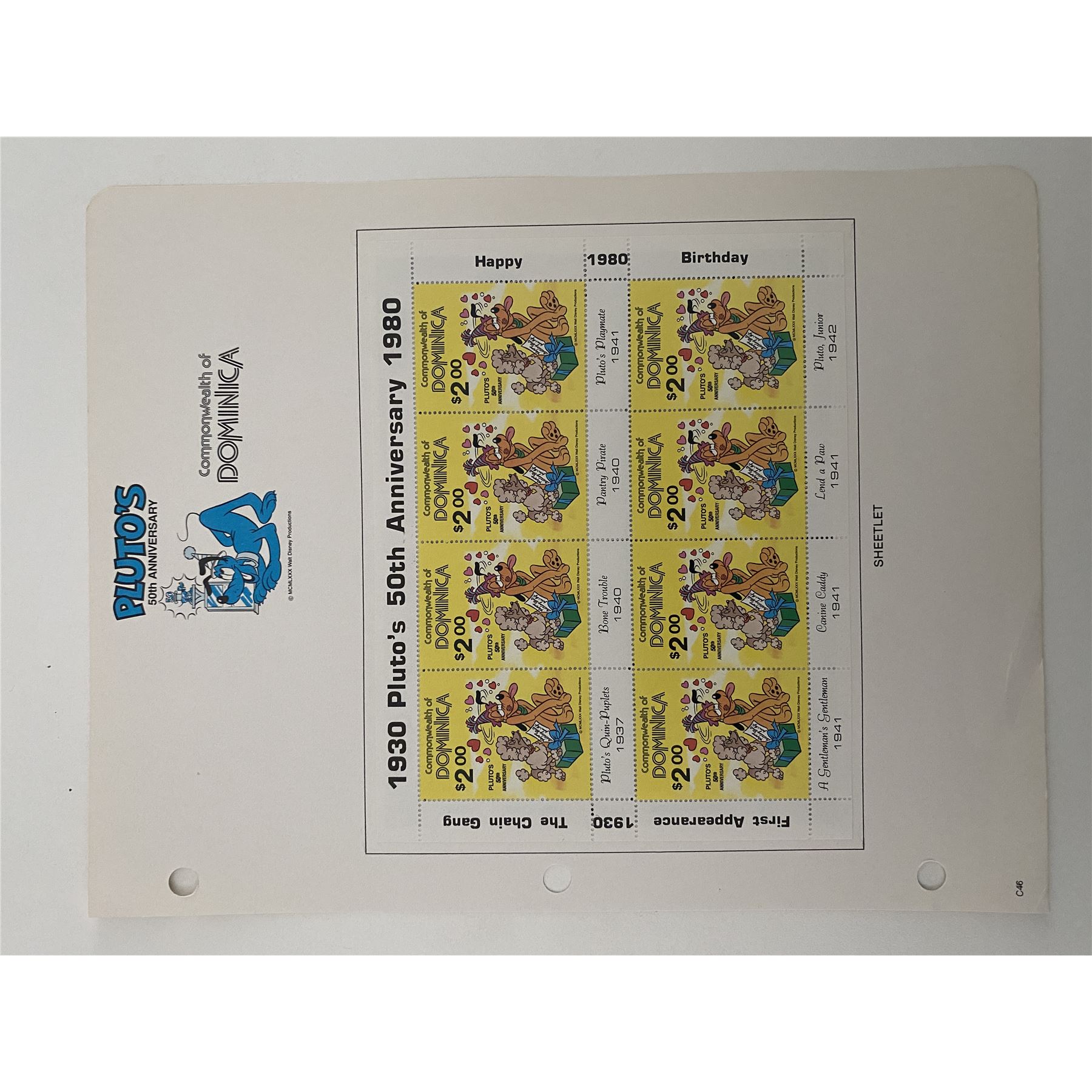 Walt Disney Pluto, Pluto's 50th Anniversary Stamp Sheet. Commonwealth of Dominica