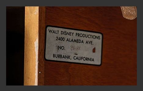 (Walt Disney Studios, c. 1940's). Walt Disney was looking to grow his company when he moved the Walt DIsney Studios from Hyperion to Burbank, California. This included more space and new equipment for his staff and animators. Offered here is a very rare, vintage Walt Disney Studios animator desk from the 1940's. This vintage desk is designed by American industrial designer and architect Kem Weber. Weber also served as the main architect for the Walt Disney Studios at Burbank and is famous for designing and creating the "Airline" chair of 1934. Most of these surviving chairs come from the batch of 300 that were made specifically for the Walt Disney Studios at Burbank. The animator desk has a metal tag on it that reads "Walt Disney Productions, 2400 Alameda Ave., Burbank, California" and has a serial number on the tag of "2686." The 2400 Alameda Ave., Burbank, California address was the first location of the Burbank Walt Disney Studio. The Studios was later re-zoned to the current address of 500 South Buena Vista Street Burbank, CA 91521. The animators desk is in good condition with normal wear from age and use. The dimensions are approximately 72" x 50.5" x 30".