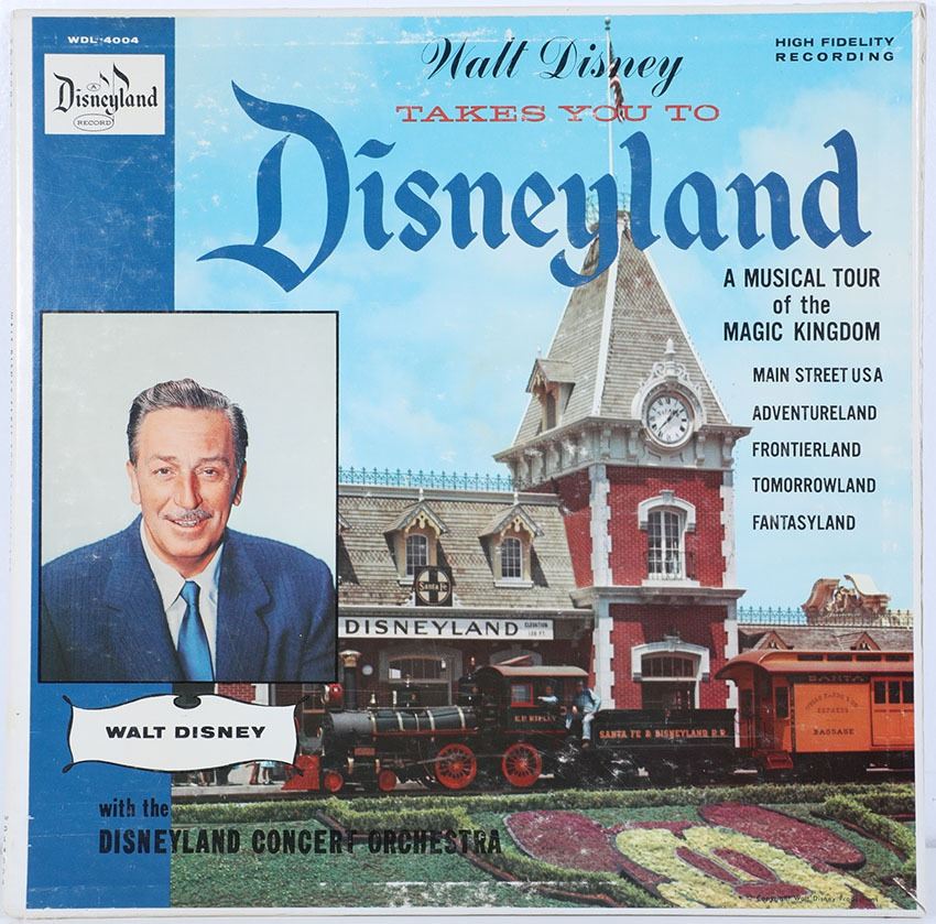 (Disney, c. 1956). A rare "Walt Disney Takes You to Disneyland" album featuring early sounds and history of the park. The album is in good condition with normal wear from age and handling. Item comes with a Grand Circle Tour Auctions COA.