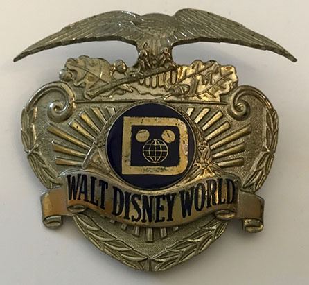 (Walt Disney World, c. 1970's-80's). A rare Walt Disney World security hat badge. The badge is in fair condition with normal wear from age and good wear from park use. Item comes with a Grand Circle Tour Auctions COA.
