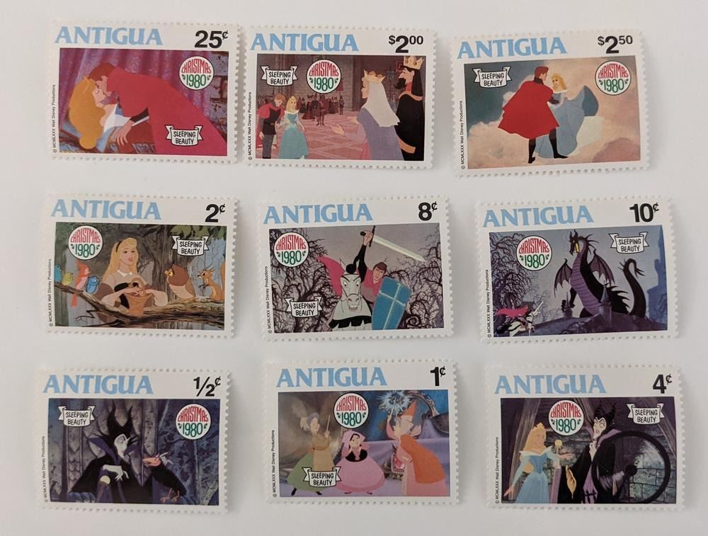 Walt Disney's Sleeping Beauty Set of 9 Individual Stamps - Antigua - Christmas 1980