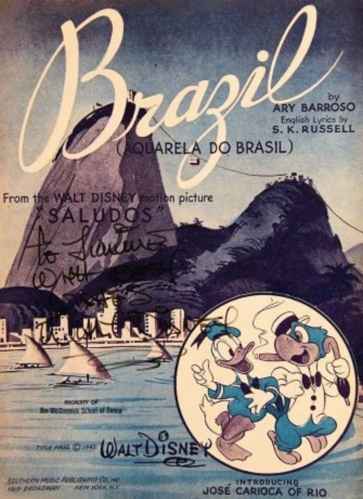 Brazil - 1942 sheet music from "Saludos Amigos" autographed by Walt Disney as To Laurie With Best Wishes Walt Disney.