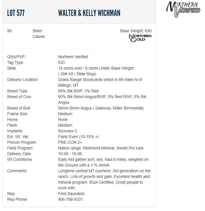 Walter & Kelly Wichman - 99 Steers; Base Weight: 630