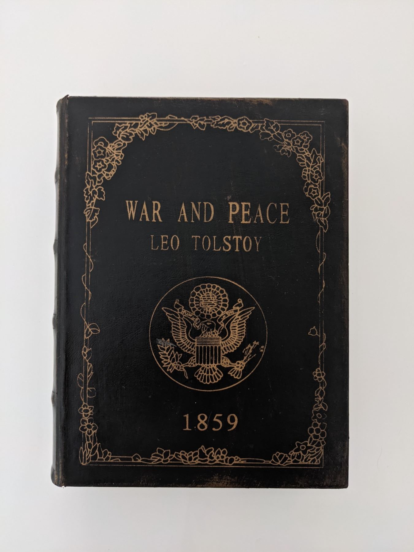 War and Peace binder book with cutout in middle of book. Great for storing jewelry and small items