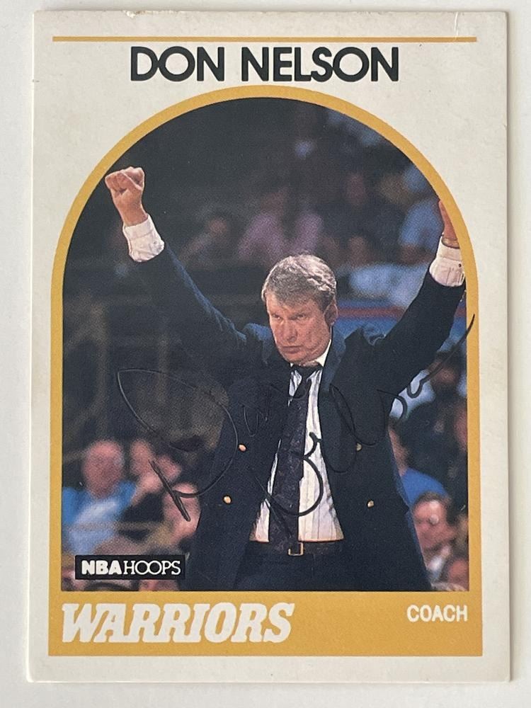 Warriors Don Nelson signed 1989-90 #273 NBA Hoops trading card. 2x3 inches