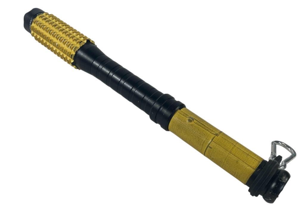 This is a real aluminum baton with painted yellow tape handle one end and painted yellow on the top end.