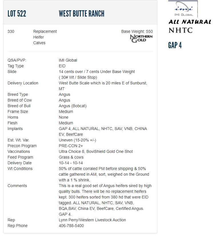 West Butte Ranch - 330 Replacement Heifers; Base Weight: 550