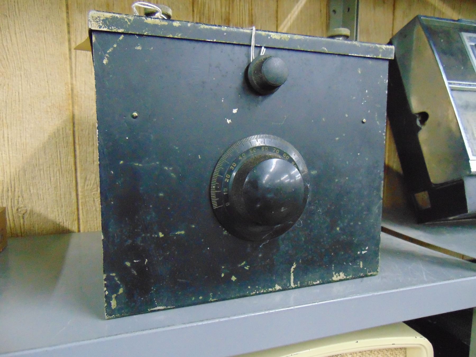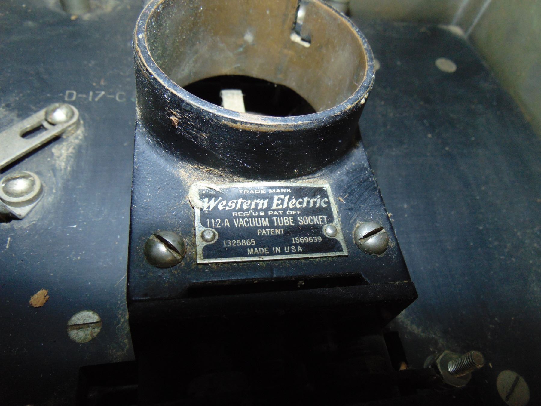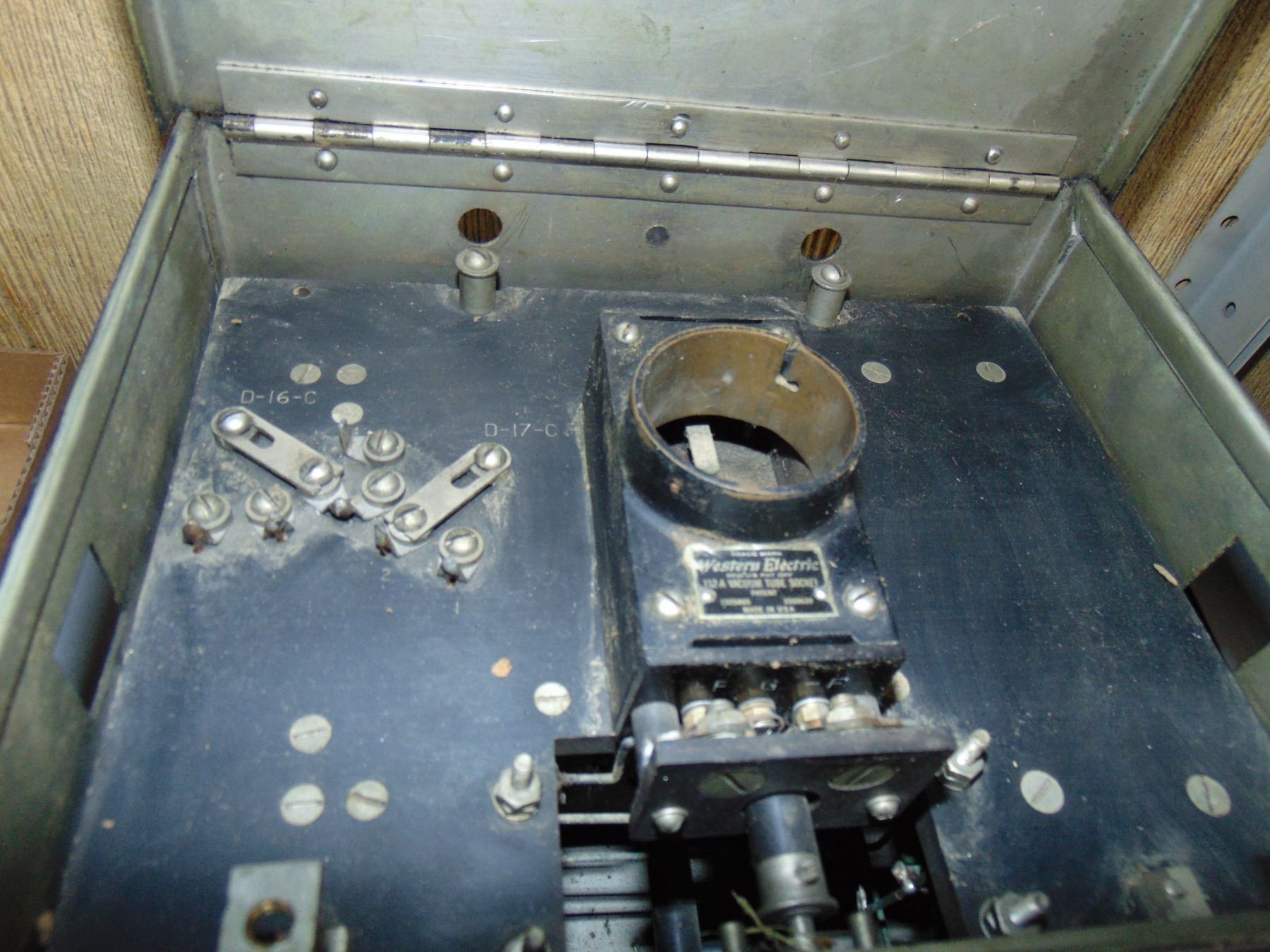 Unknown radio item; black metal box using WE parts, including tube socket on top; tuner??