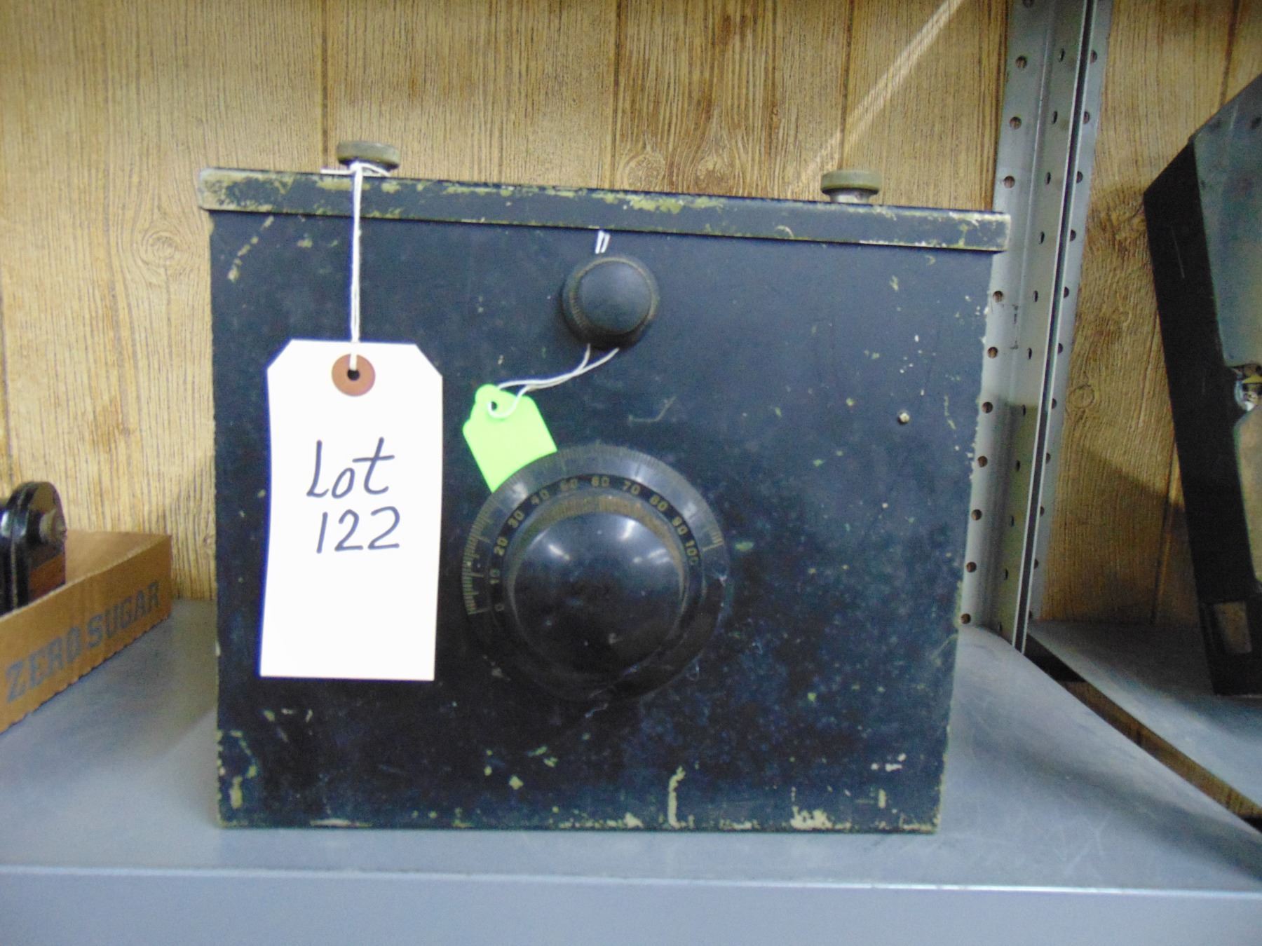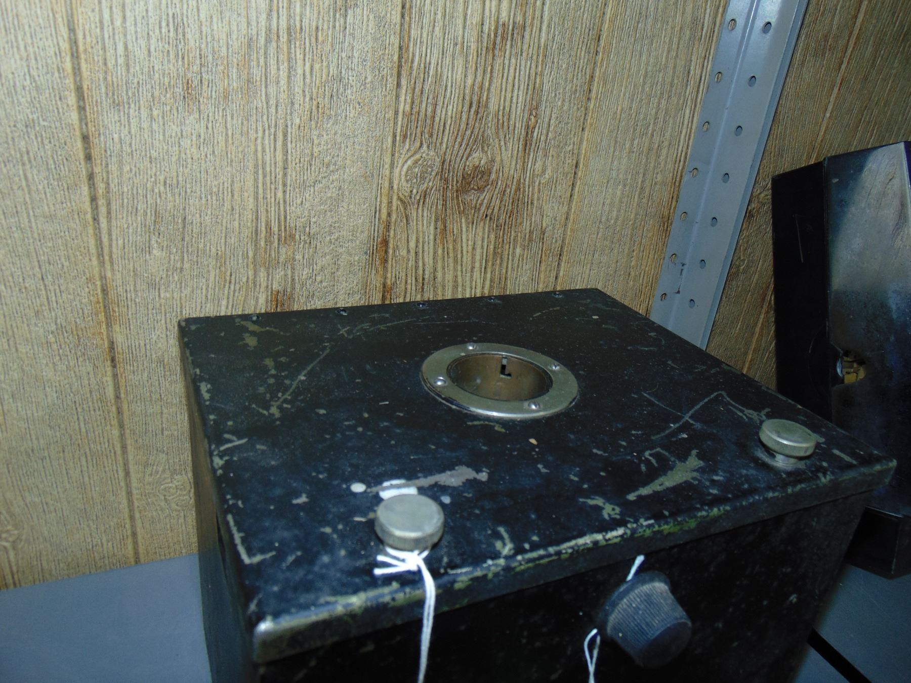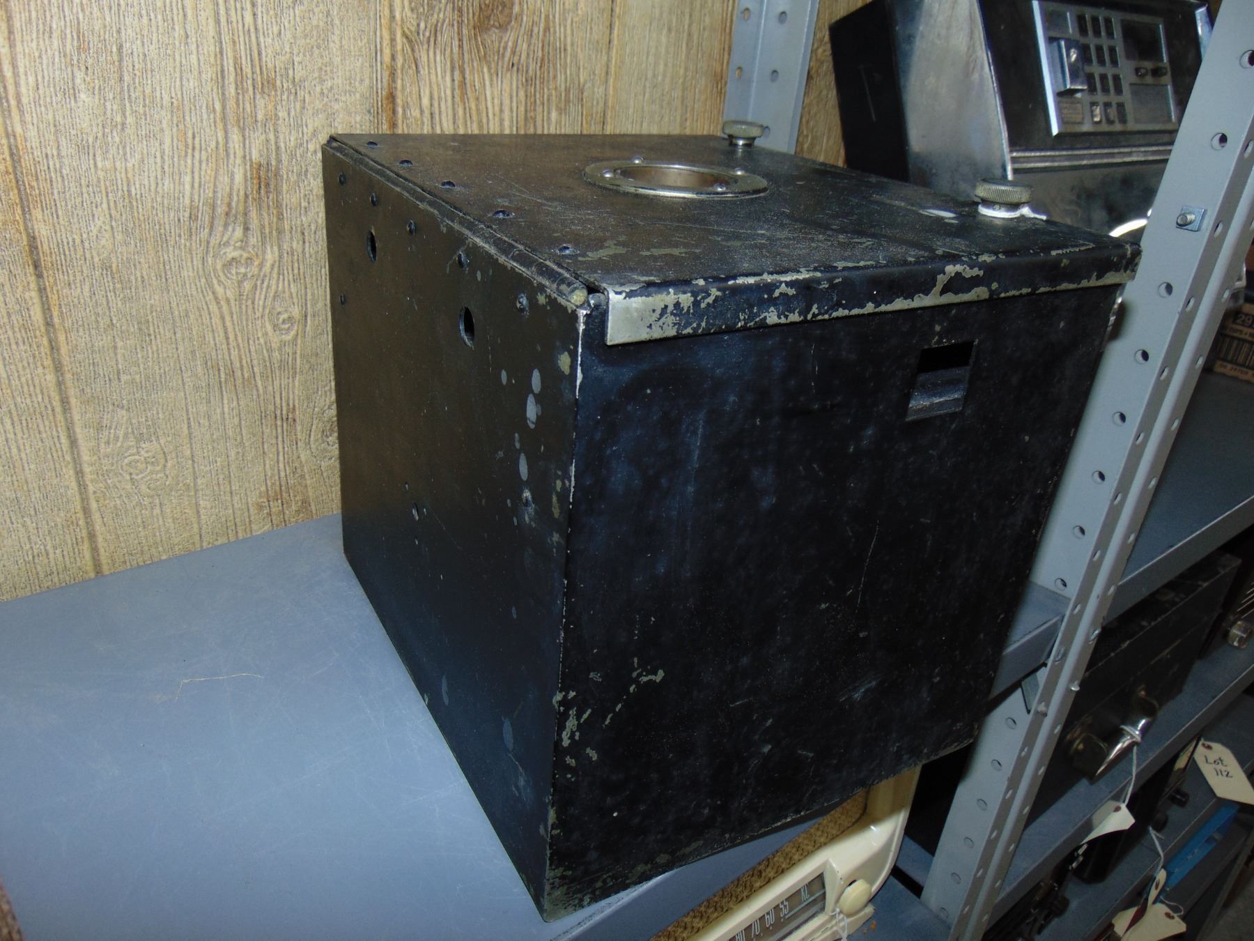 Unknown radio item; black metal box using WE parts, including tube socket on top; tuner??