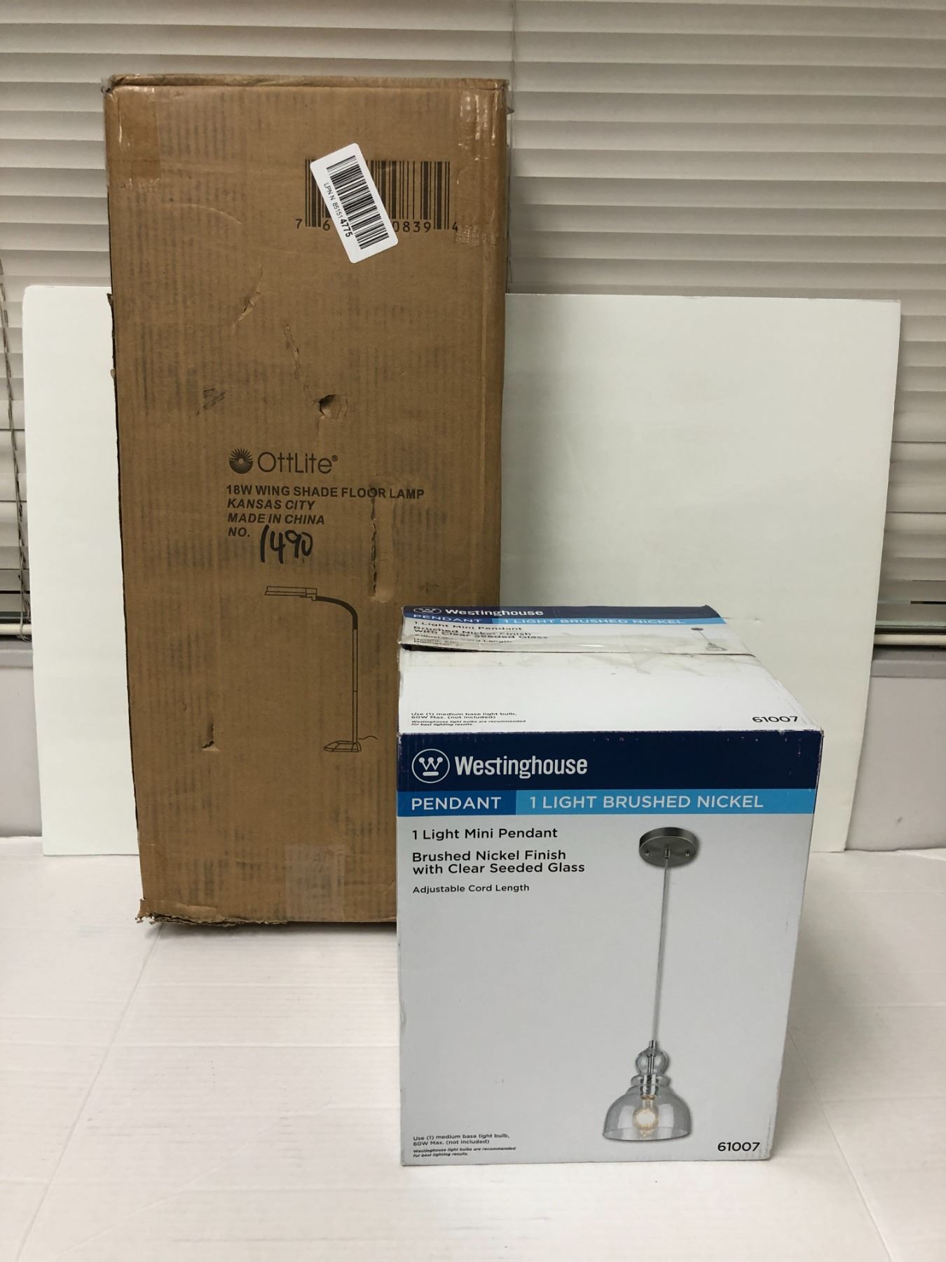 Westinghouse Brushed Nickel Mini Pendant Light and Ottlight 18W Wing Shade Floor Lamp