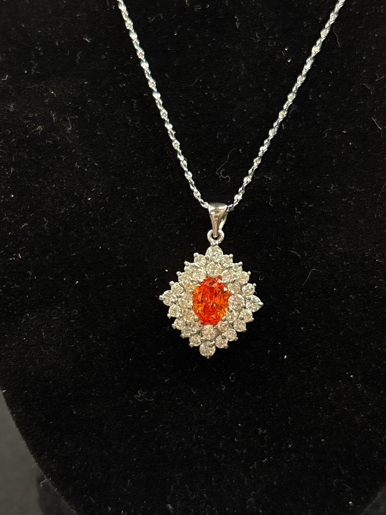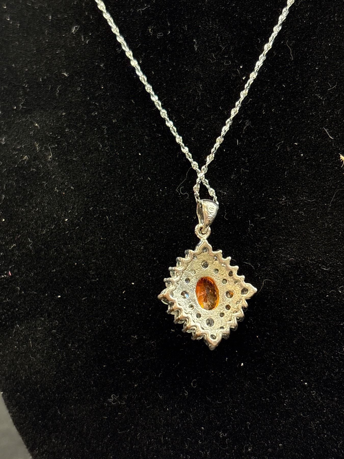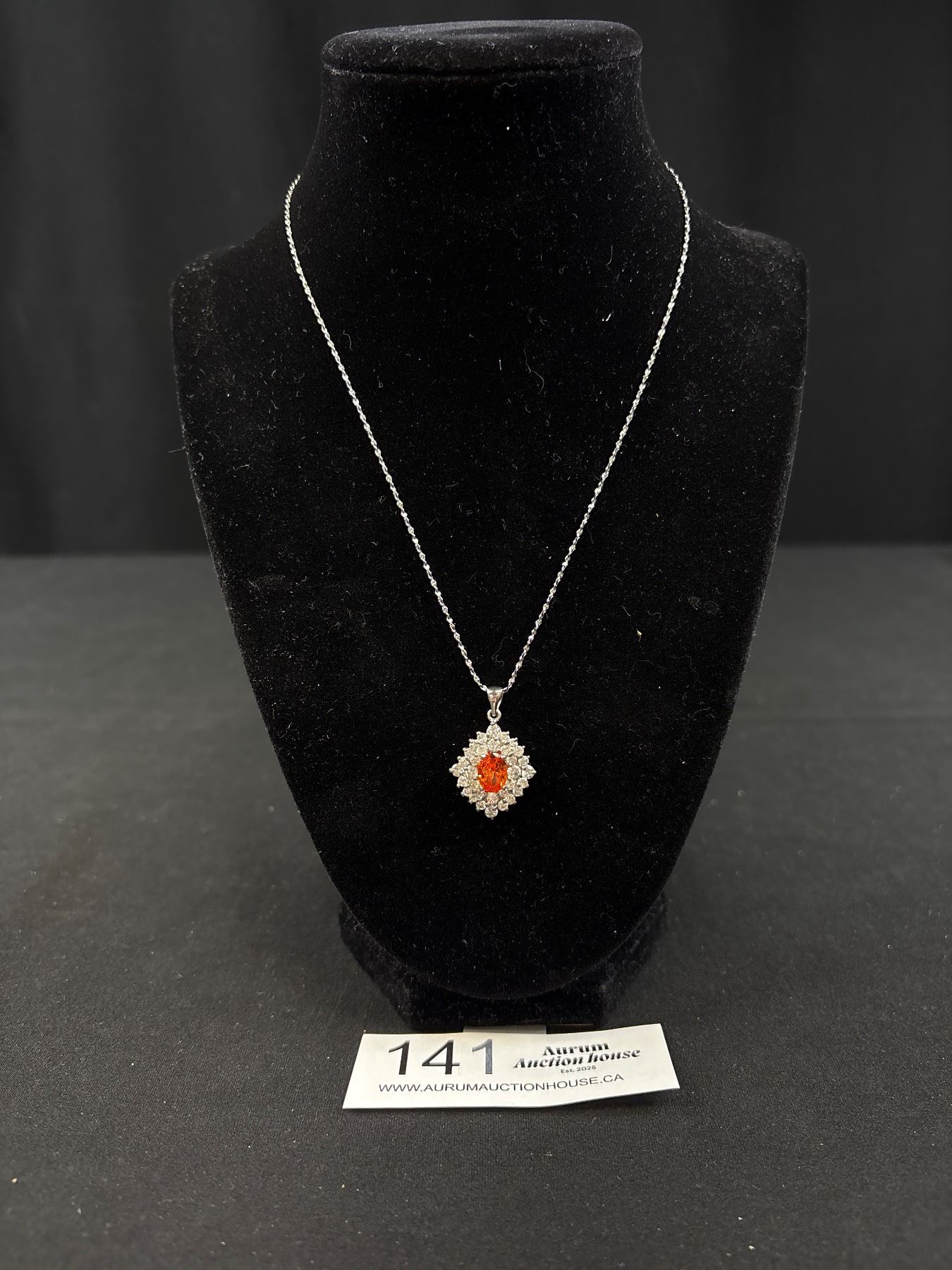 White Gold Plated Pendant w/ Chain Necklace Marked 18k GP