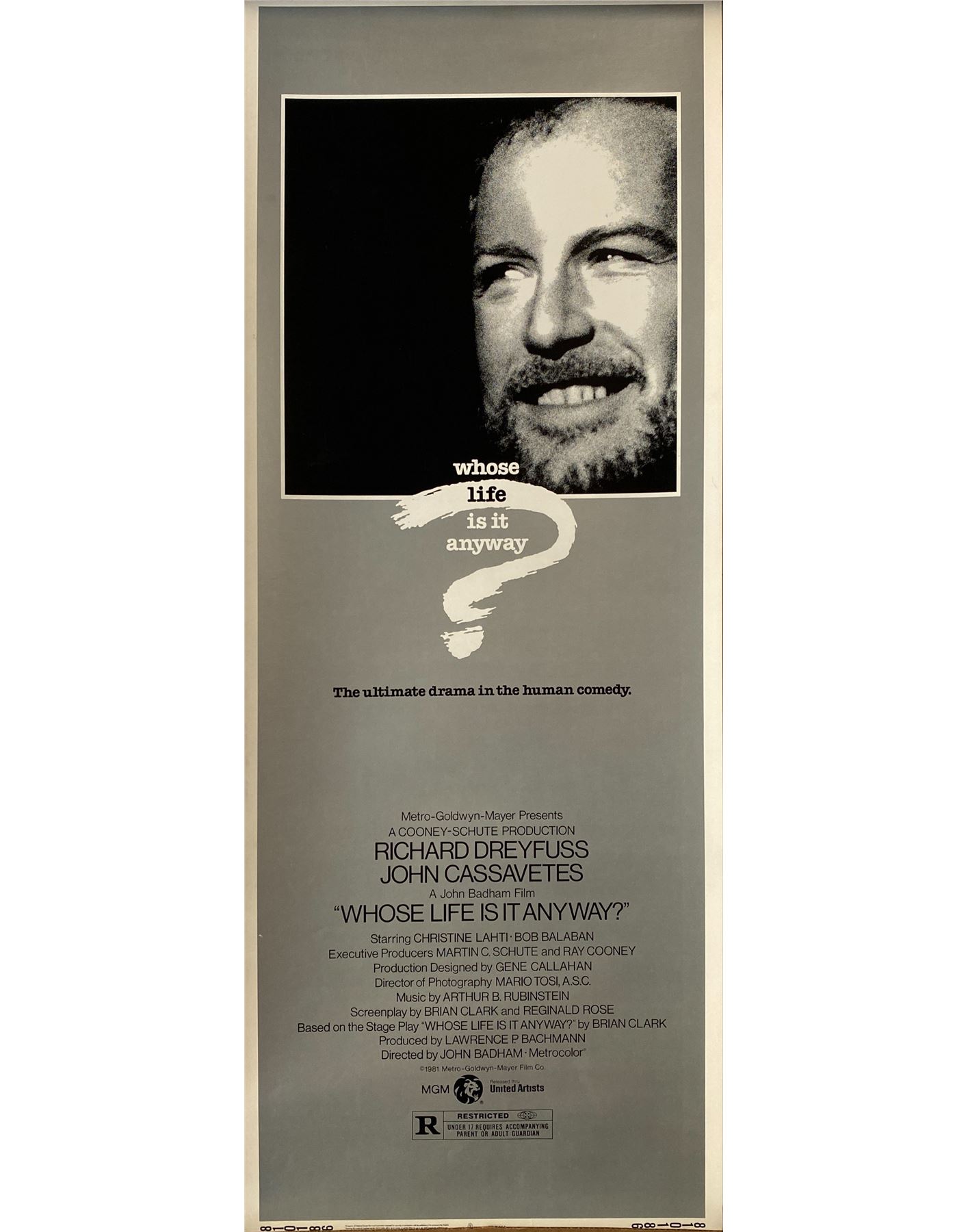 Whose Life Is It Anyway? 1981 original vintage insert card. 14X36 Inches
