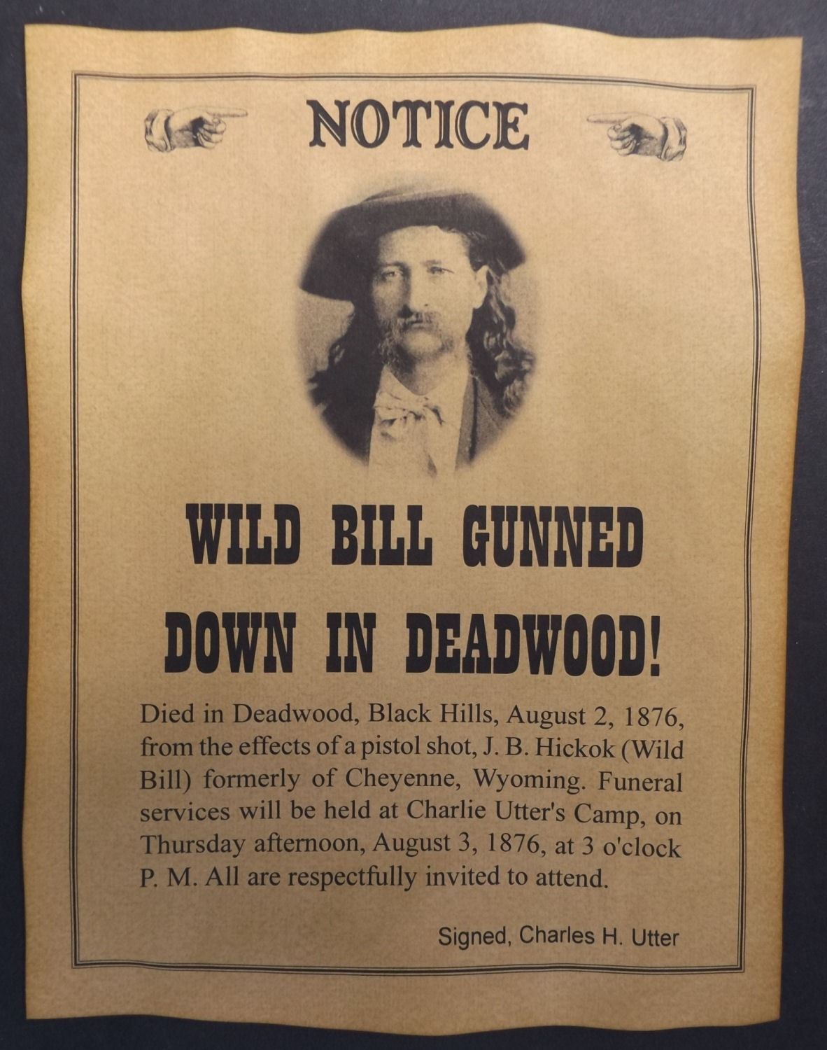 James Butler Hickok (May 27, 1837 – August 2, 1876), better known as "Wild Bill" Hickok, was a folk hero of the American Old West known for his life on the frontier as a soldier, scout, lawman, cattle rustler, gunslinger, gambler, showman, and actor, and for his involvement in many famous gunfights. He earned a great deal of notoriety in his own time, much of it bolstered by the many outlandish and often fabricated tales he told about himself. Some contemporaneous reports of his exploits are known to be fictitious, but they remain the basis of much of his fame and reputation. 8 x 10 inch