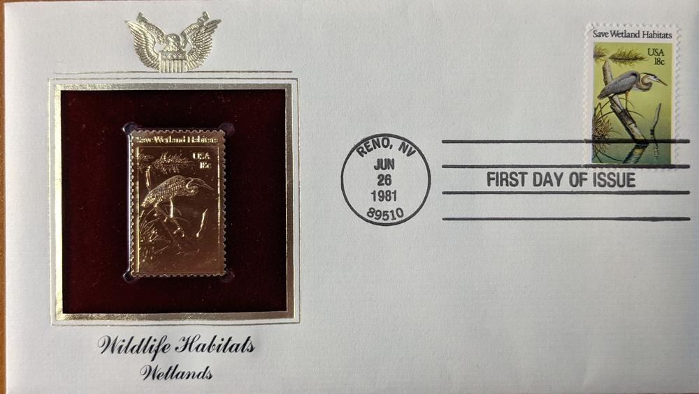 Wildlife Habitats Wetlands Gold Stamp Replica First Day Cover. Reno, NV Jun 26 1981