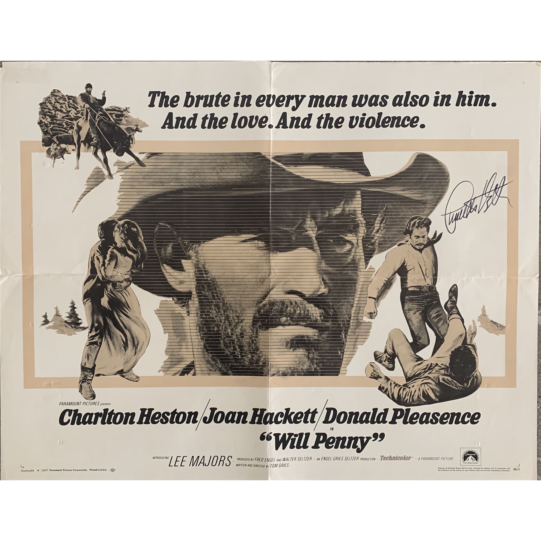 Will Penny signed movie poster autographed by Charlton Heston. 11x14 inches