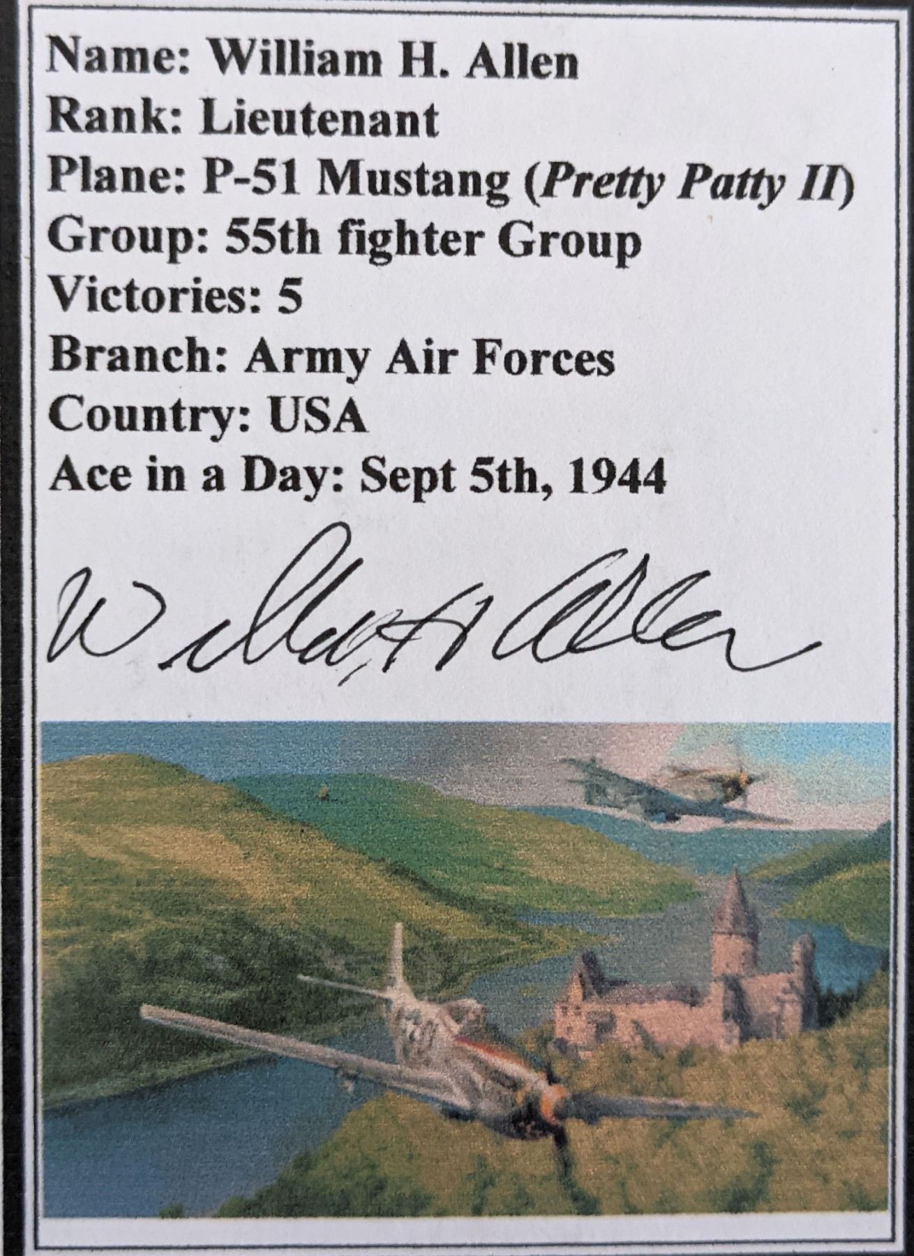 William H. Allen signed Wolrld War ll Ace card. 3x4 inches
