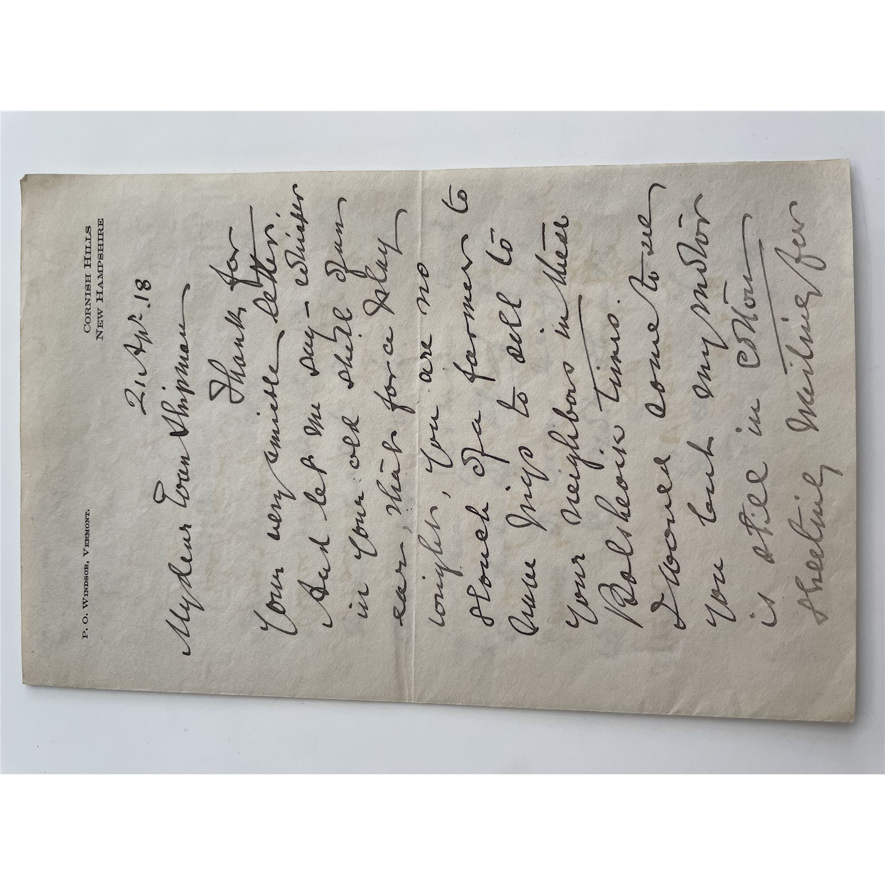 William M. Folger signed letter. 4x7 inches