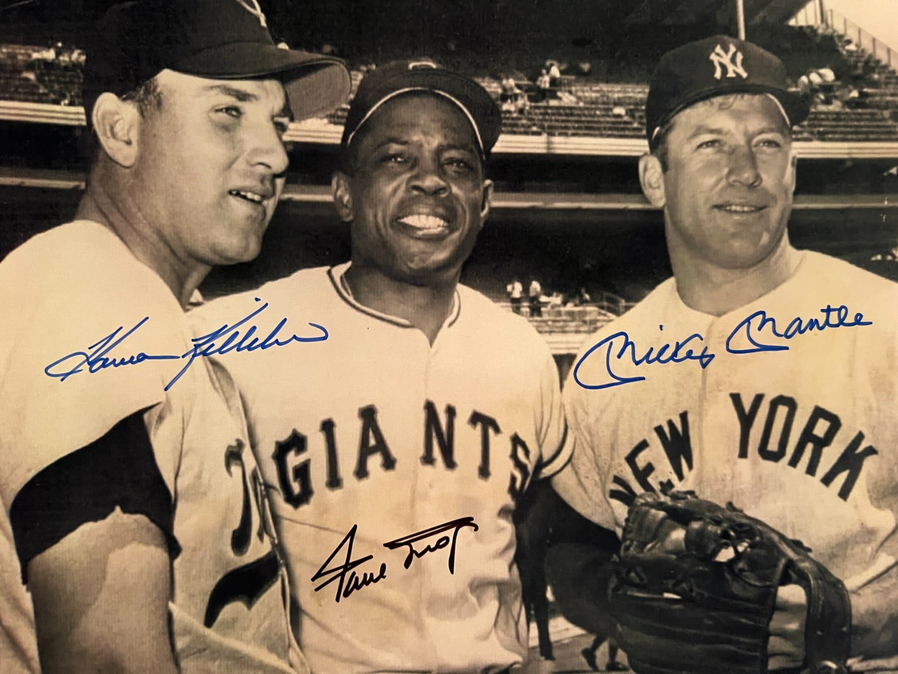 Willie Mays, Mickey Mantle and Harmon Killebrew signed photo. 8x10 inches