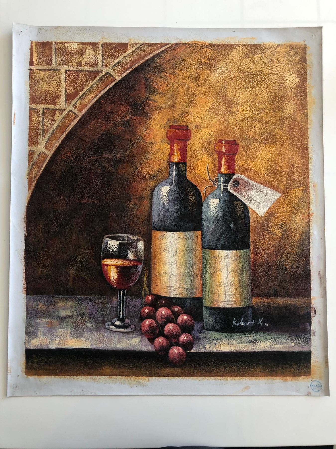 Wine and Grapes Still Life original painting on canvas. Signed by artist. 23x27 inches