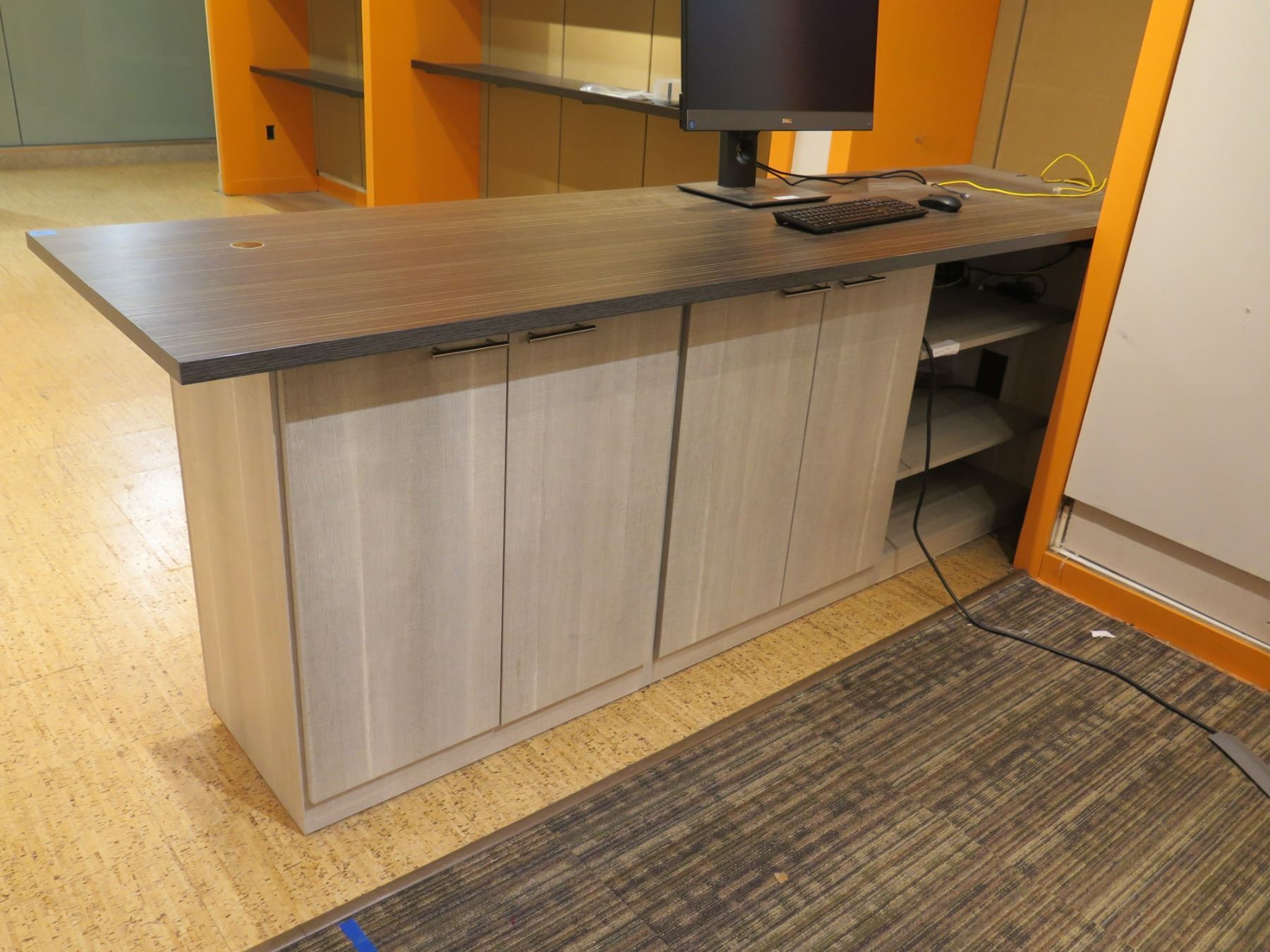 Wooden Counter w/ Cabinets & Shelving