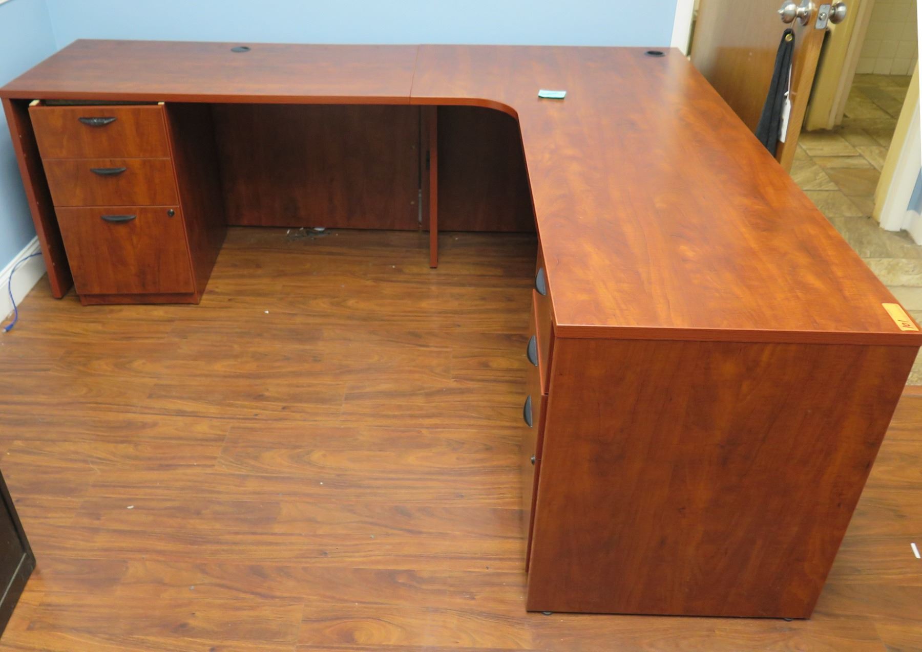 Wooden "L" Shaped Desk w/ 6 Drawers 84"x72" x 24"W