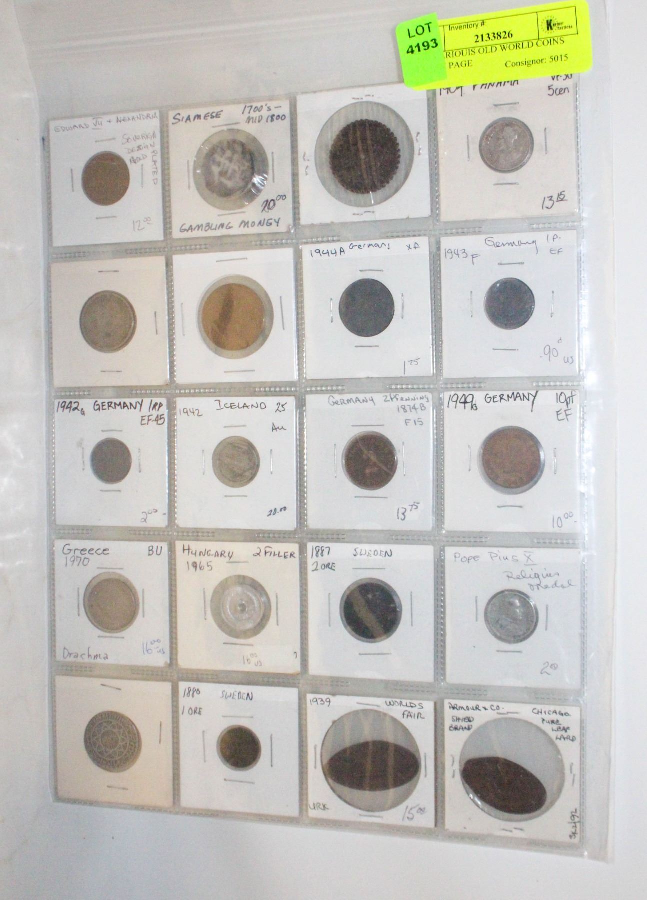 X20 VARIOUIS OLD WORLD COINS LOT IN PAGE