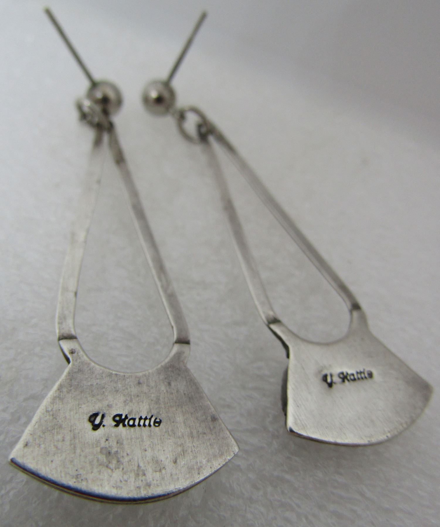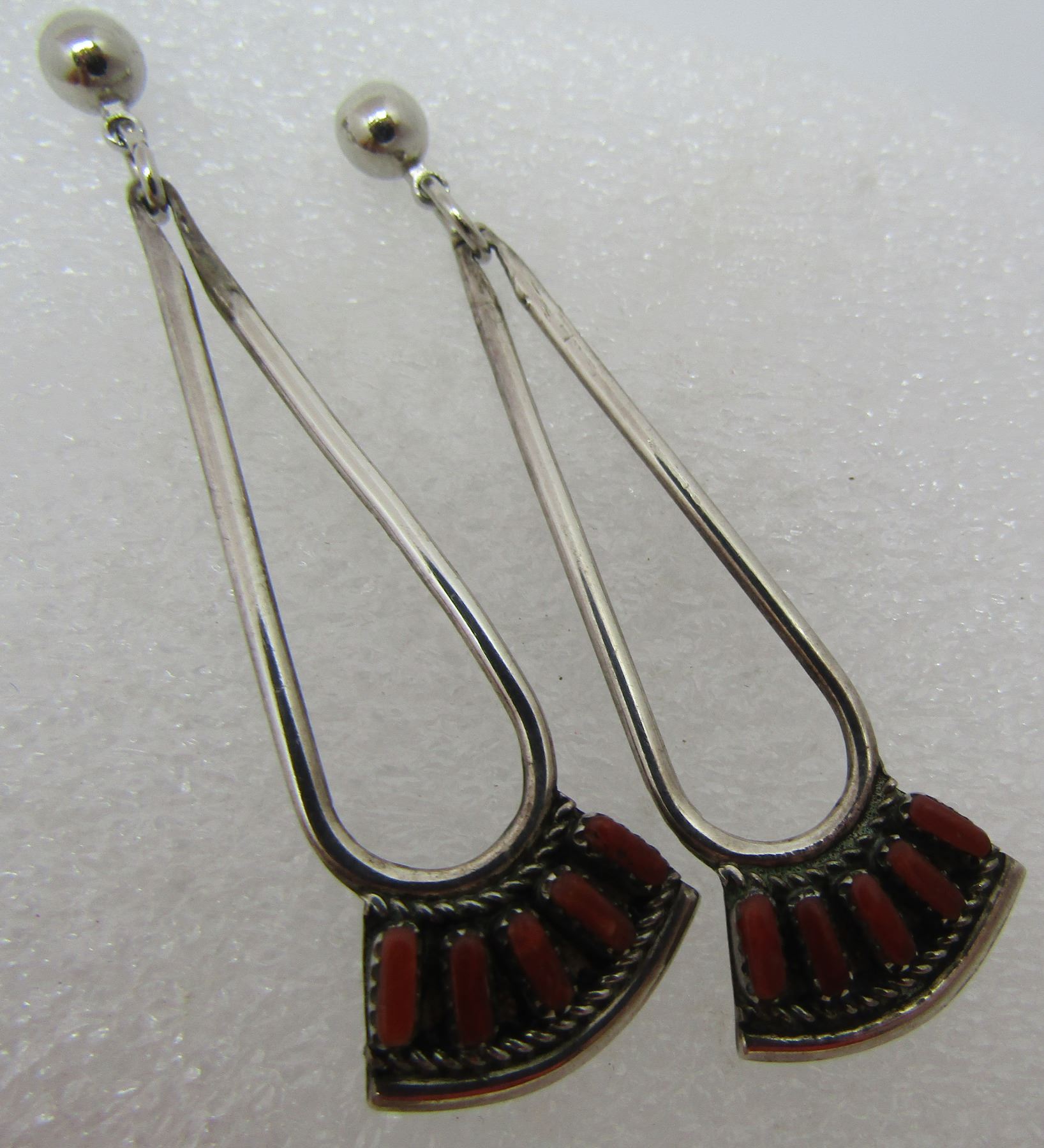 HALLMARKED "Y HATTLE" NEEDLE POINT VINTAGE ESTATE NATIVE AMERICAN SOUTHWEST ZUNI INDIAN JEWELRY. MOUNTED WITH 10 CORAL STONES. PIERCED MEASURE 53MM LONG BY 16MM WIDE. TESTED STERLING, WEIGH 5.0 GRAMS. USASHIPPING $5.