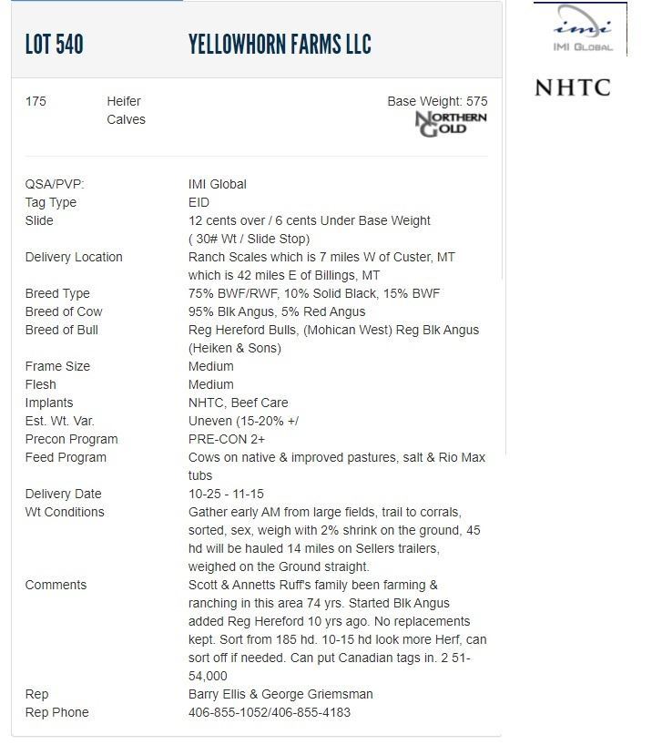 Yellowhorn Farms LLC - 175 Heifers; Base Weight: 575