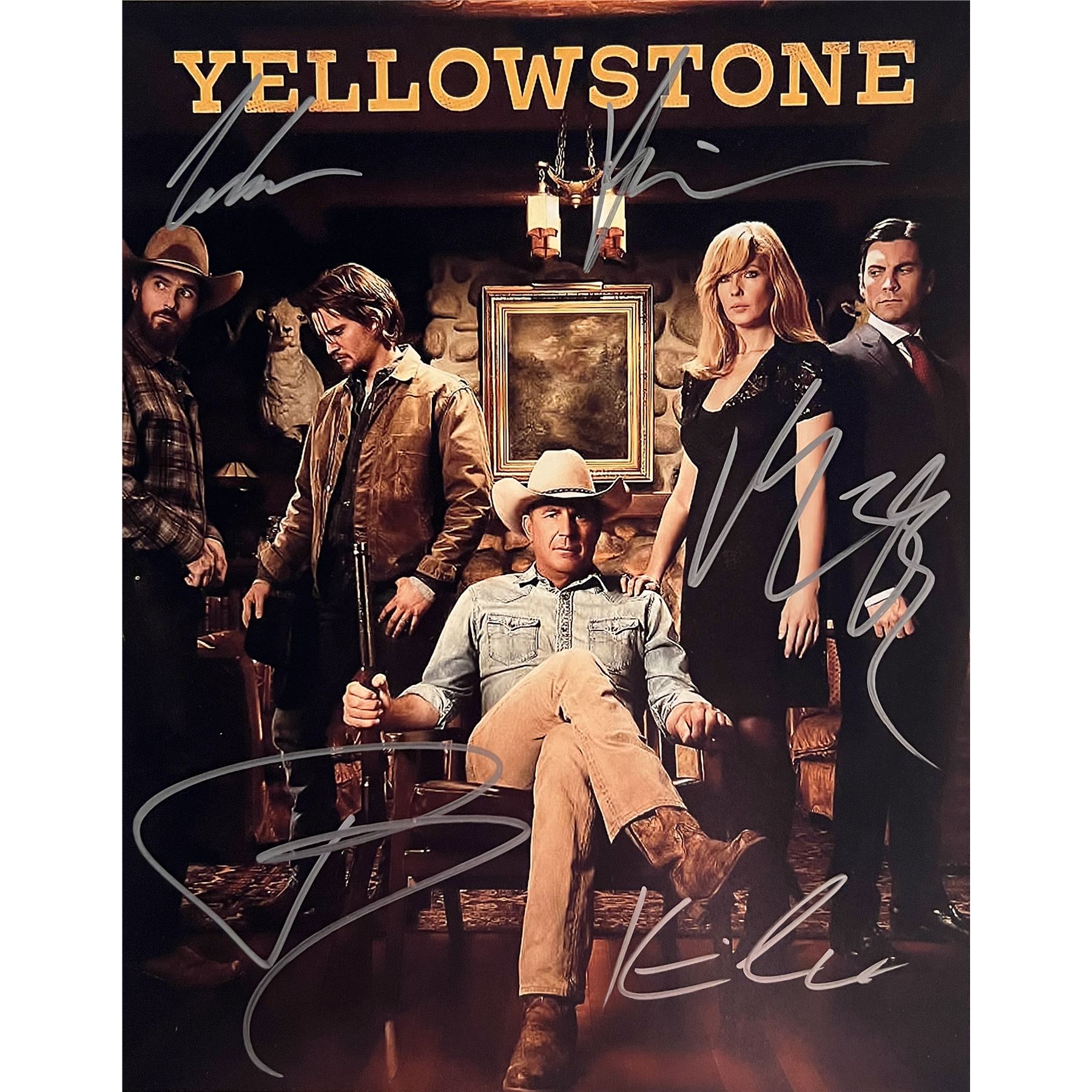Yellowstone cast signed photo autographed by Kevin Costner, Kelly Reilly, Cole Hauser, Luke Grimes and Taylor Sheridan. 8x10 inches