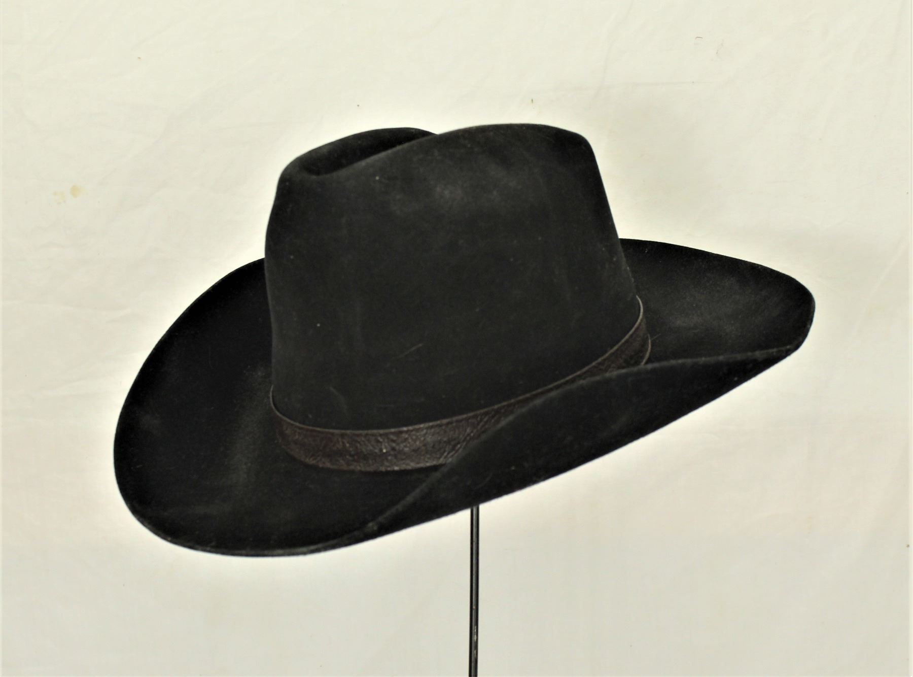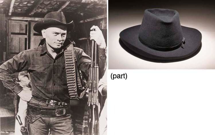 A black Dynafelt "Trail Ridge" brand hat, size 7 1/4, with Mirisch-Alpha Pictures studio label sewn in inner lining stating "The Magnificent Seven Yul Brynner". This hat being made for him is authenticated and documented in the included portfolio by Boyd Magers.