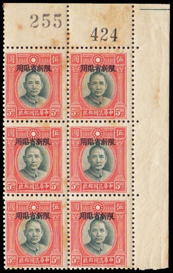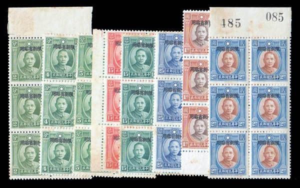 Yunnan, 1932-34, Dr Sun Yat-sen For Use in Yunnan Province Peking overprints, 2 to 5 Chan Y43-51. Scott 36-44, plate blocks of 6, in 2x3 format, o.g.; some gum toning, etc., Fine to Very Fine, a scarce set of multiples. Scott 3,225 HK 25,390.