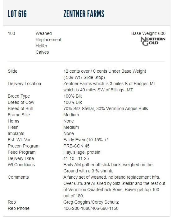Zentner Farms - 100 Weaned Replacement Heifers; Base Weight: 600